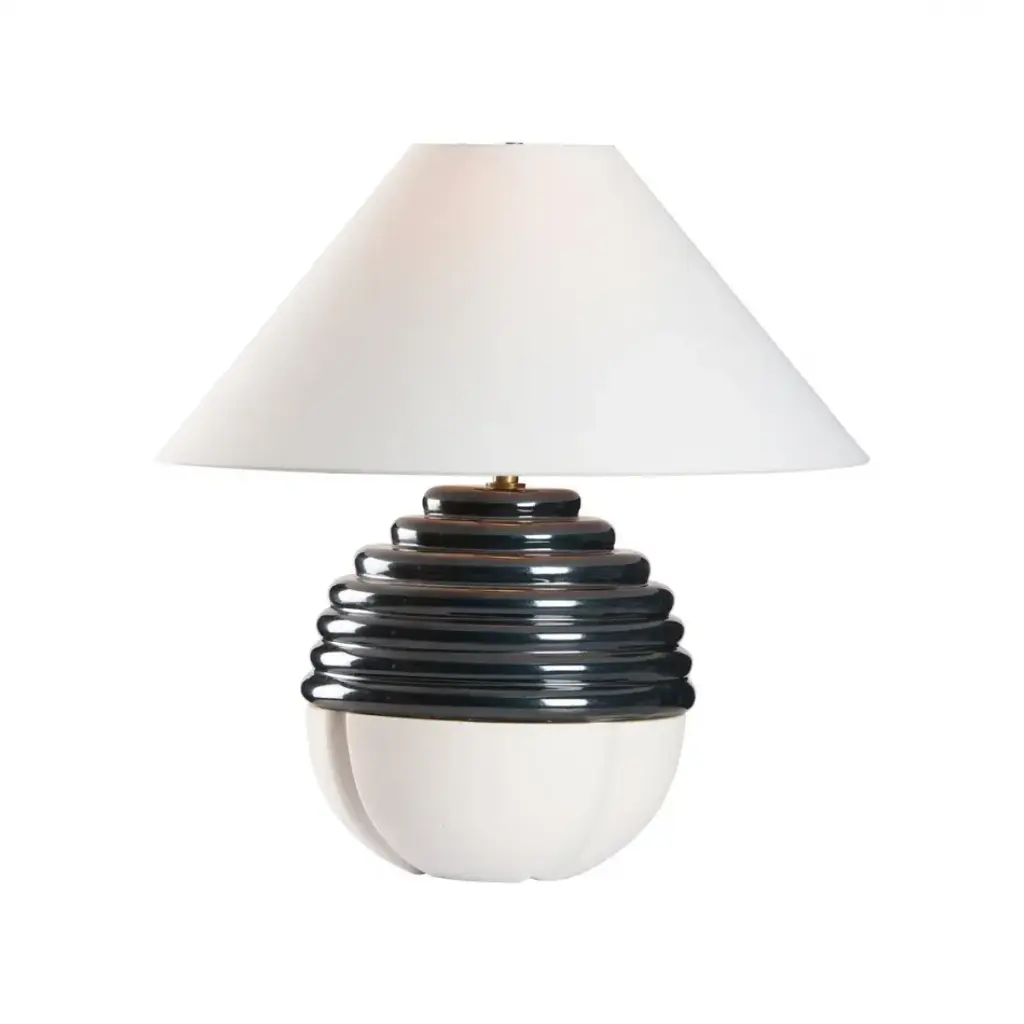 The Phoebe Tray Table Floor Lamp seamlessly blends the elegance of brass with the delicate charm of ceramics. This uniquely designed lamp features a brass and ceramic construction with a linen shade. It combines classic and modern aesthetics, bringing an air of sophistication to your living space. With designer Kelly Wearstler's distinctive style, this floor lamp not only illuminates your room but also adds a touch of artistic elegance, combining form and function seamlessly.