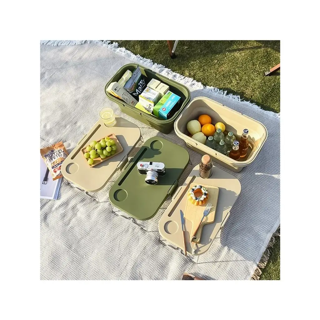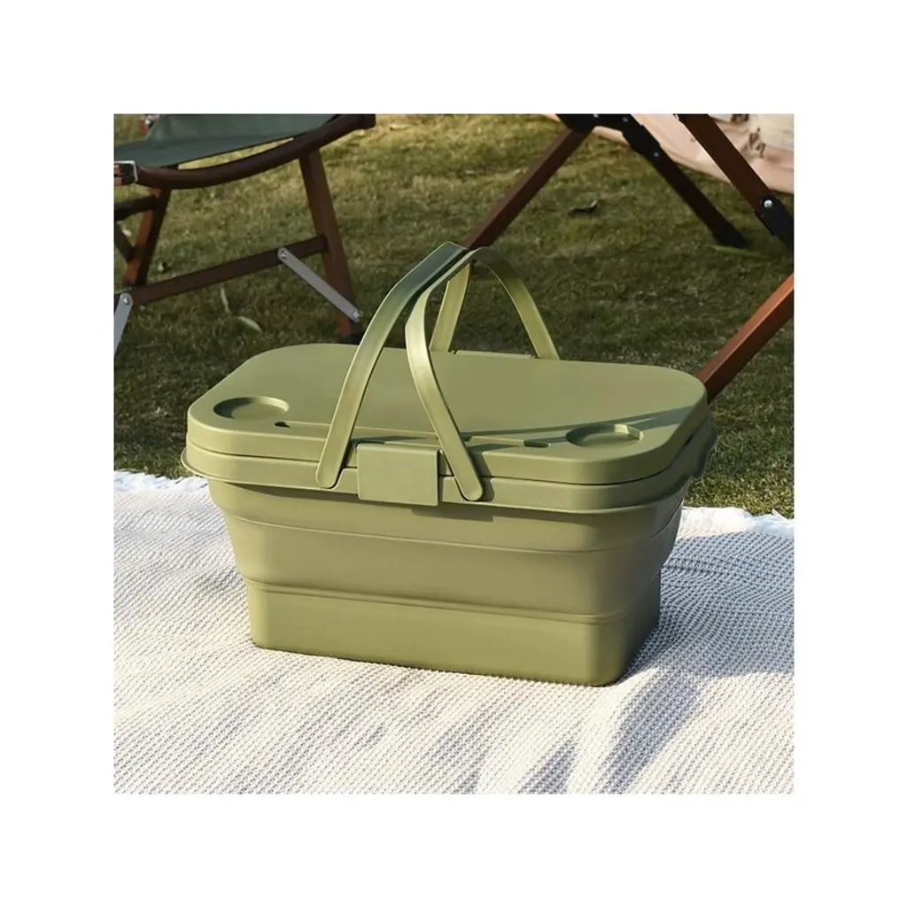 Racxily Collapsible Picnic Basket With Tray Stand, Portable Storage Basket, Foldable Camping Organizer, Green