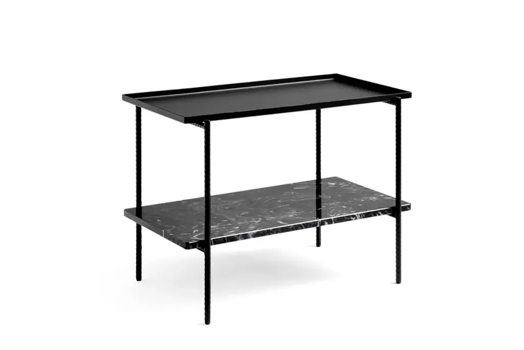 Sylvain Willenz’s Rebar collection is a series of coffee-, side- and tray tables that explores the possibilities of reconsidering construction materials and processes. The design juxtaposes the reinforced steel bar frame with black marble tops and metal trays to create a balanced aesthetic. The tables are available in different sizes in round, square and rectangular shapes, and are suitable for using in private, corporate or public spaces.18 mm polished marble tabletop with chamfered edges.16 mm anchor rebar fully weldedIncl. transparent silicone bumpers.
