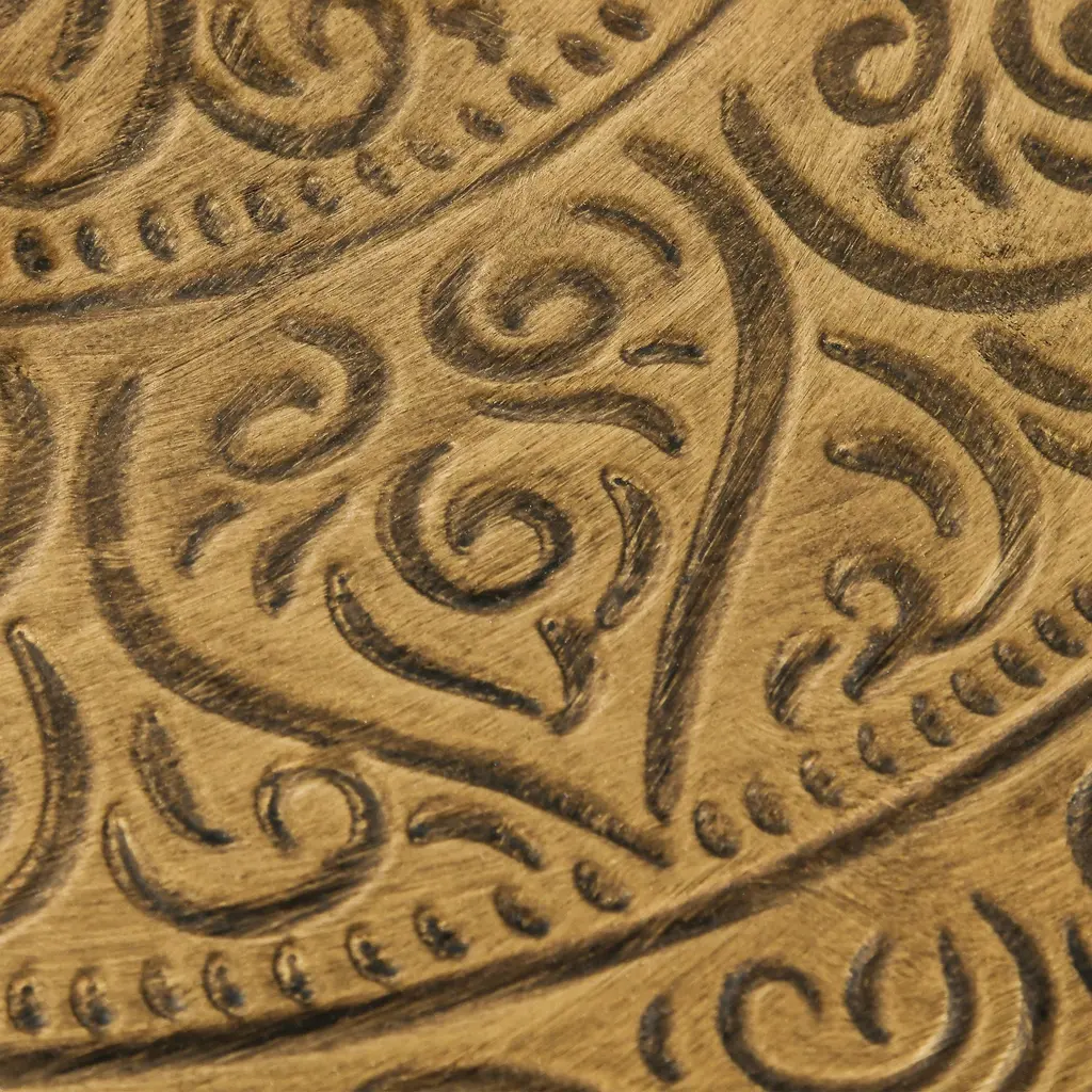 Transform your living space with this exquisite coffee table, showcasing a handmade brushed metallic finish that adds a touch of elegance. The hammered floral pattern not only enhances its visual appeal but also provides a unique texture that captivates the eye. Stability is paramount, as this table features reinforced crossbars and adjustable foot pads to ensure a sturdy foundation on any surface. Versatile in design, it can serve as a charming center table, a convenient side table, or a stylish tea table, effortlessly complementing both traditional and contemporary decor.