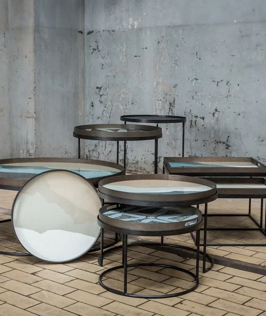 The tray table is one of Ethnicraft's most versatile pieces: while it serves its function as a side table, its ability to adopt different trays allows you to mix or match various colors and patterns, creating a personal piece that is uniquely yours. To be combined with small/large round trays or large/extra large round trays.