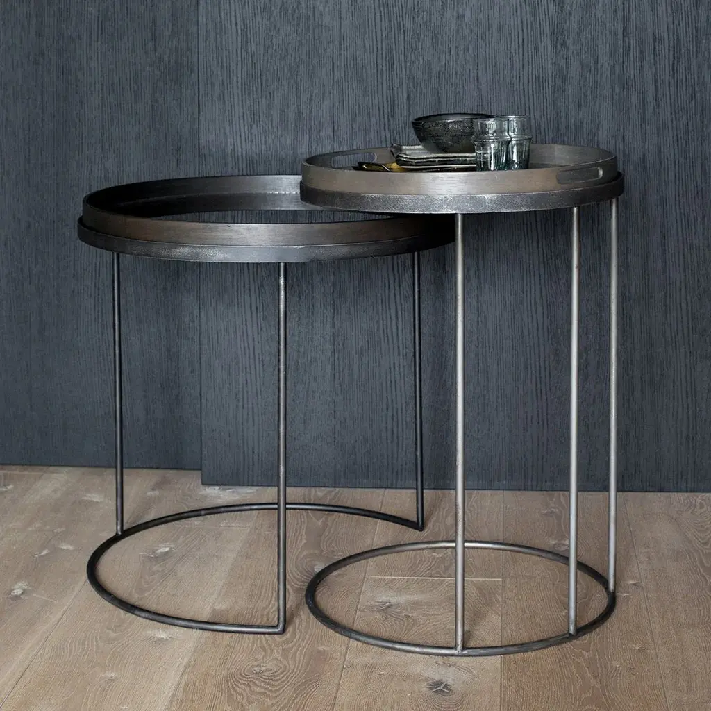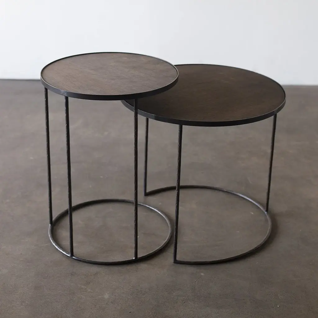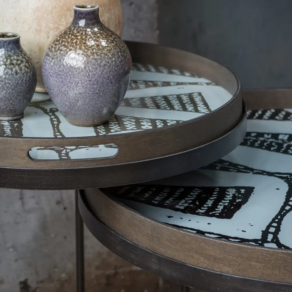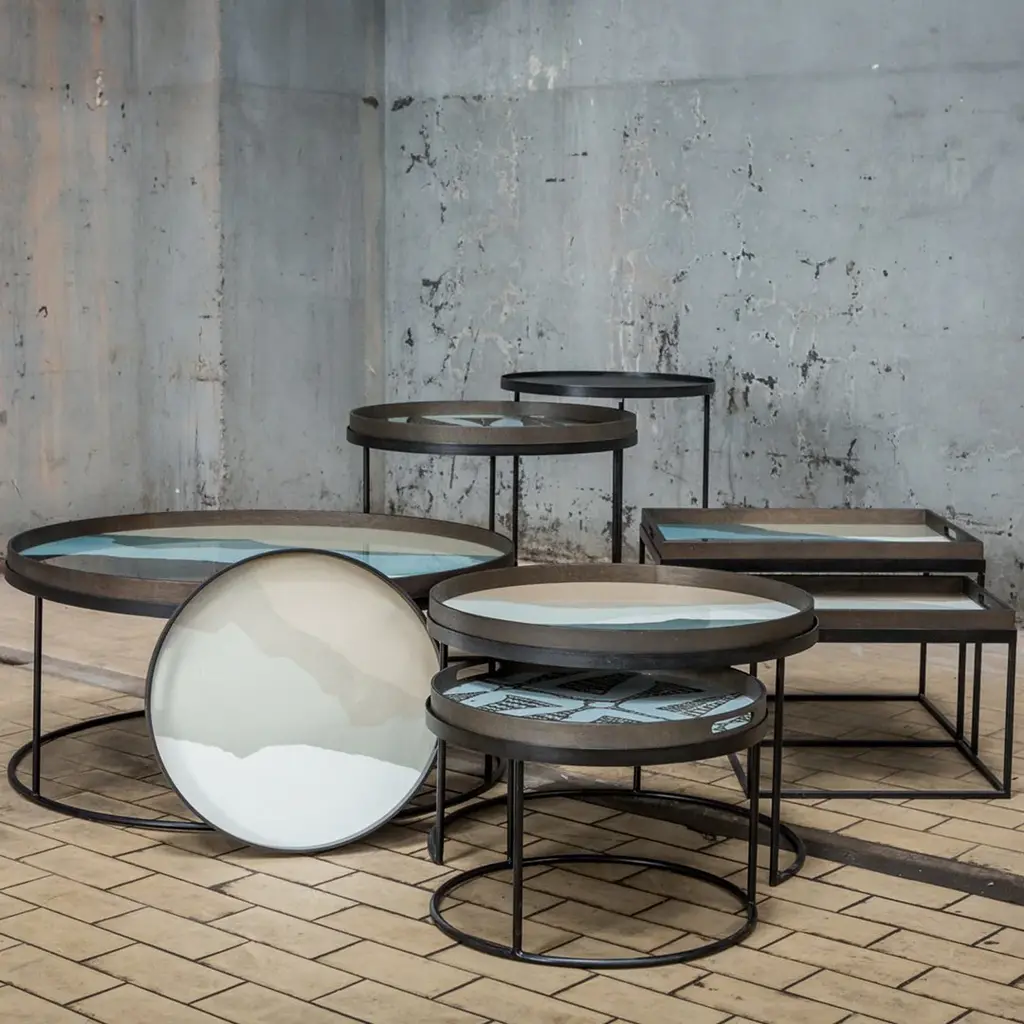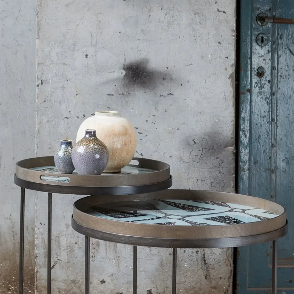 Includes 1 small round tray side table and 1 large tray side table. The small tray table can be combined with the small round tray, while the large tray table can be combined with the large round tray. Trays to be ordered separately. The tray table is one of our most versatile pieces: while it serves its function as a side table, its ability to adopt different trays allows you to mix or match various colors and patterns, creating a personal piece that is uniquely yours. And of course, a set equals twice the fun and creativity.