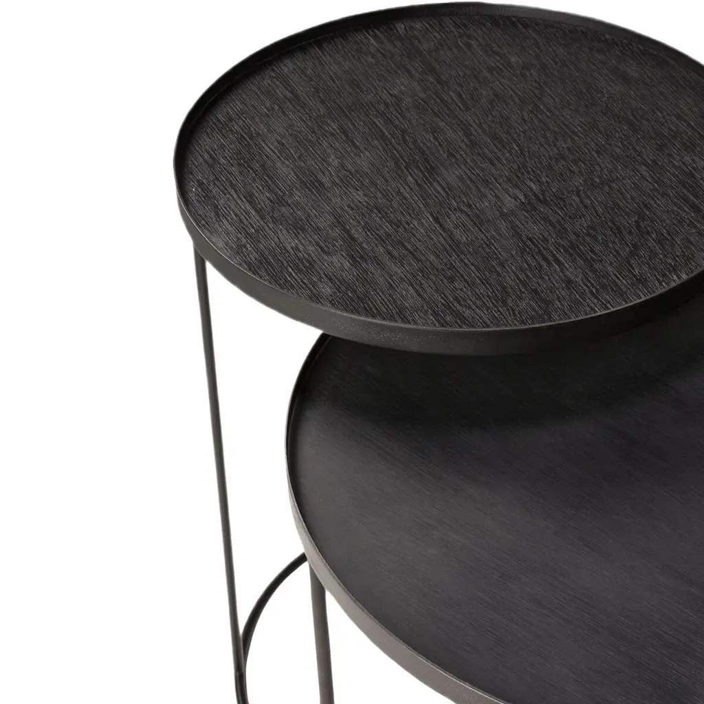 The round tray table is one of our most versatile pieces: while it serves its function as a side table, its ability to adopt different trays allows you to mix or match various colors and patterns, creating a personal piece that is uniquely yours. And of course, a set equals twice the fun and creativity.