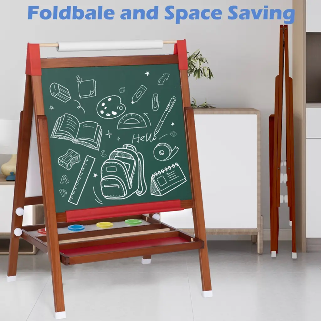 Sugift Adjustable Kids Art Easel – 3-in-1 Magnetic Whiteboard, Blackboard & Paper Roll, Foldable Wooden Drawing Board With Storage Tray