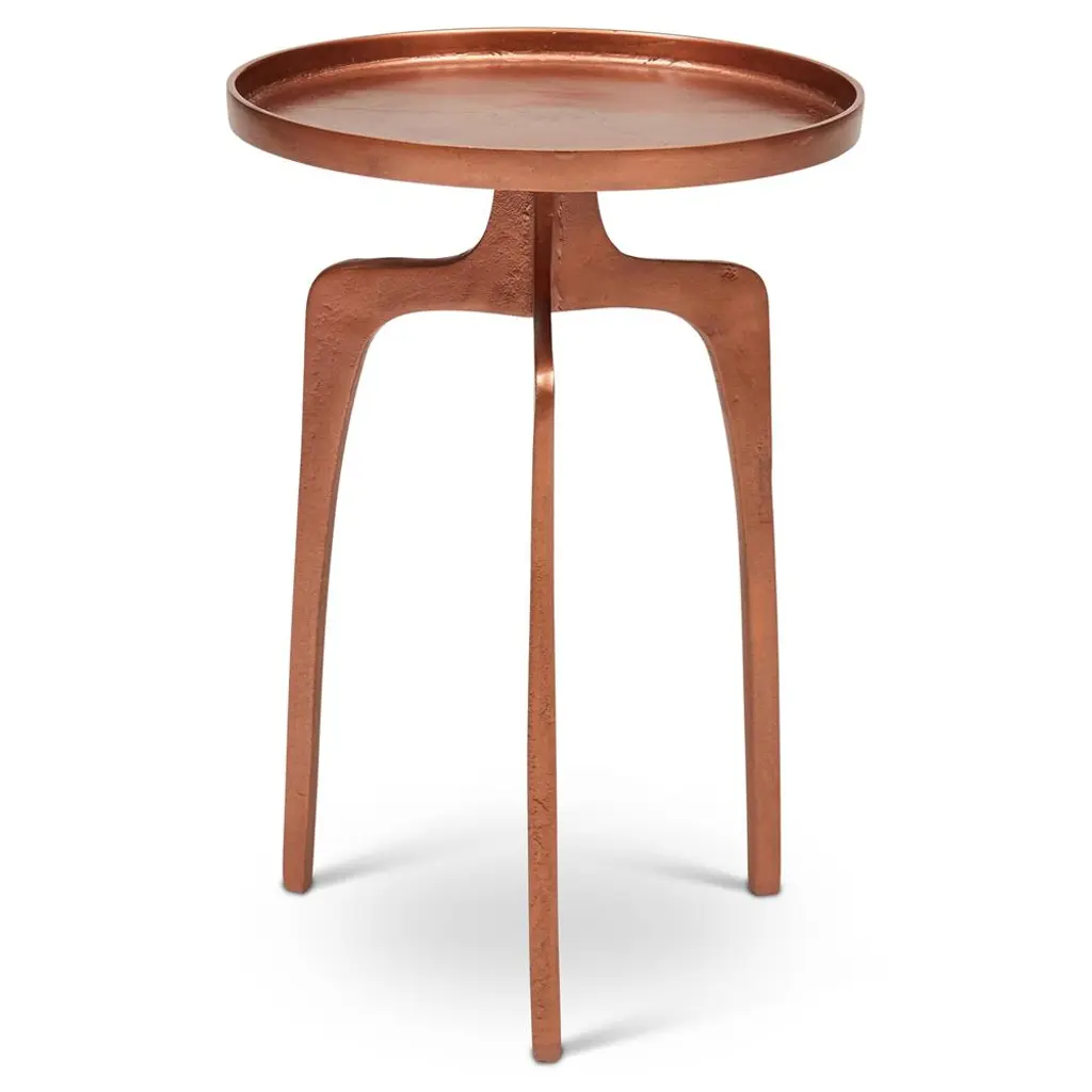 Suzannah Industrial Loft Copper Reclaimed Aluminum Tray Top Round End Table