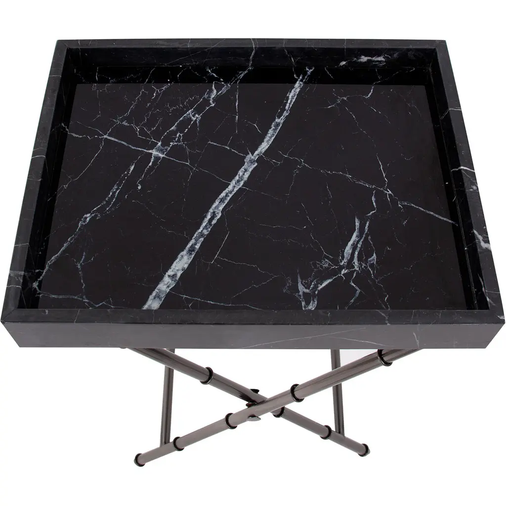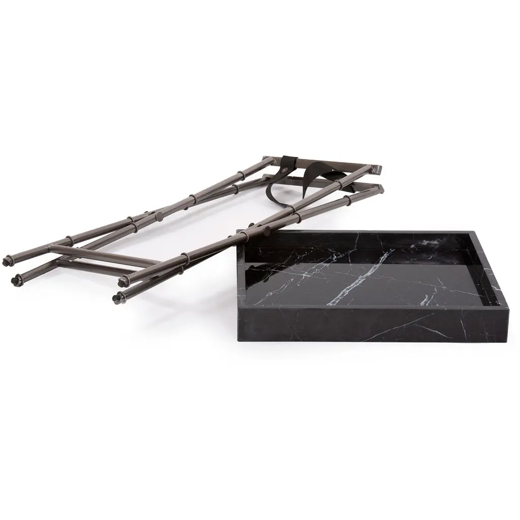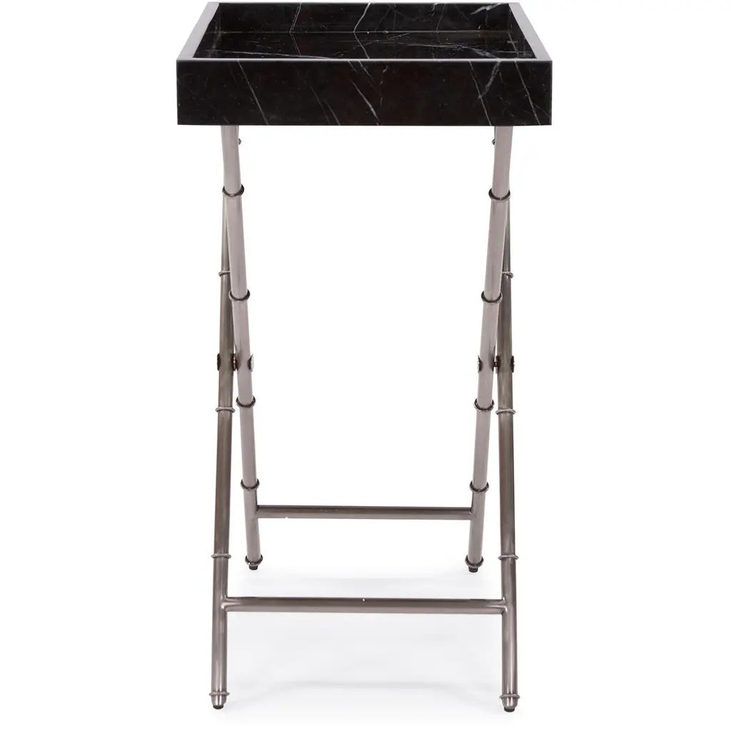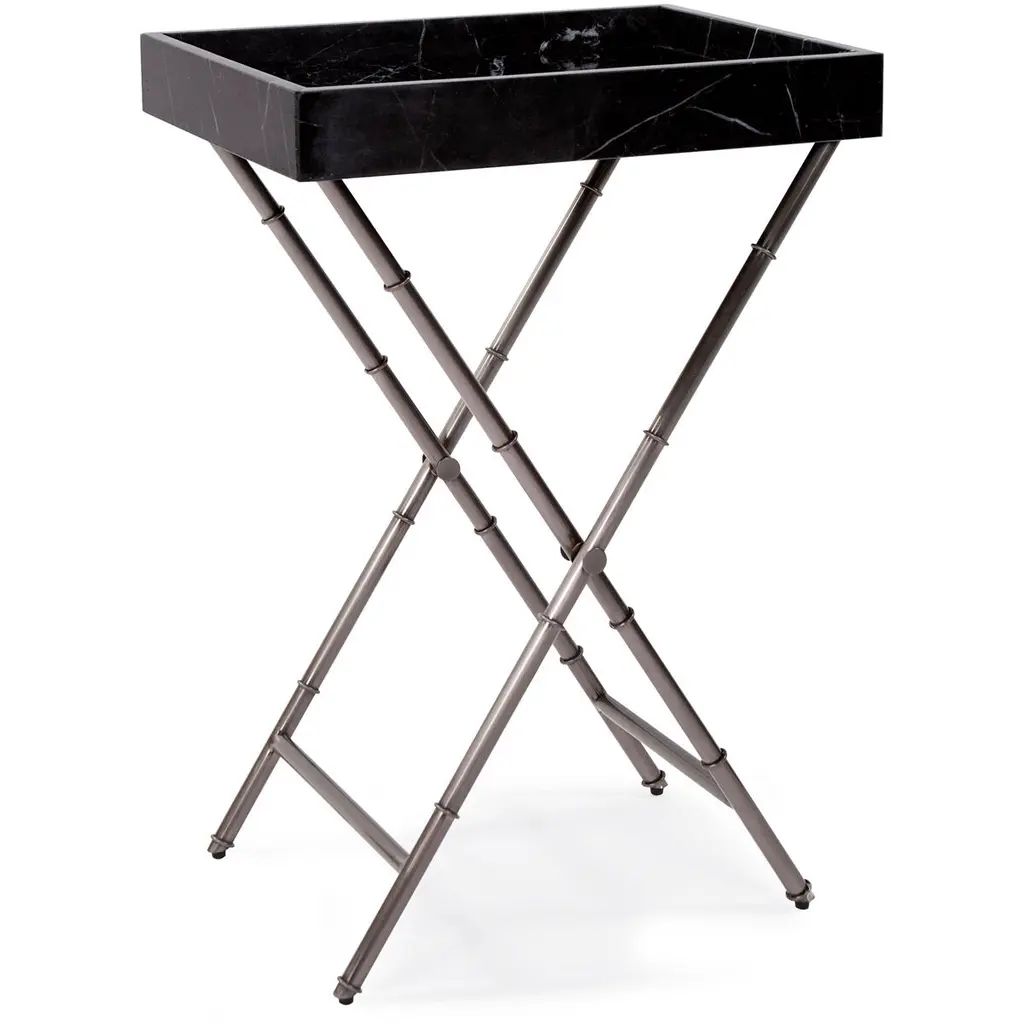 The Talbot Table's removable black marble tray adds function and style to this petite versatile side table. The stainless steel foldable base is not only beautiful in a titanium finish but is also constructed to carry its weight in function and style.