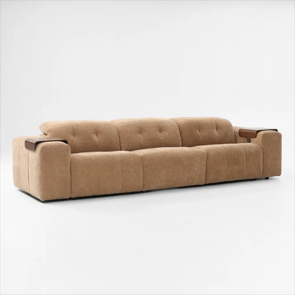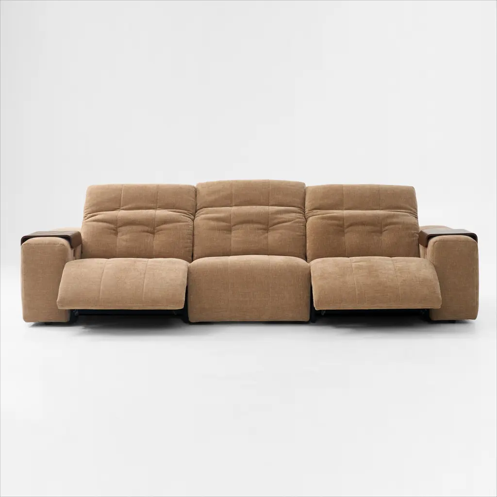 The Terrace Collection cranks it to the max—max comfort with sink-in cushions and cozy fabric, and max style with chic tufting and an elevated design (yep, a reclining sofa can look like this!). And those removable wooden tray tables? Total game-changer. Meet your new happy place!