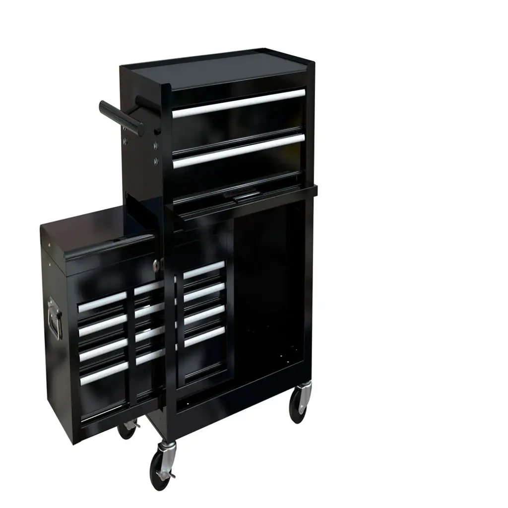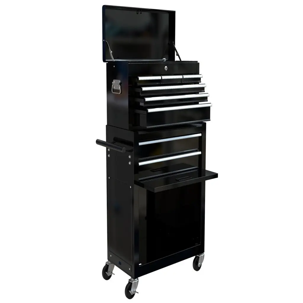 VERSATILE DESIGN:This tool chest features a detachable top and bottom, providing users with enhanced flexibility and multifunctionality. Users can choose to use the tool cabinet as a whole unit or separately, catering to different needs and occasions.PREMIUM MATERIALS & STURDY STRUCTURE: Crafted from high-quality metal materials, the tool cabinet boasts a stylish and durable exterior, coupled with a robust and stable internal structure, ensuring a reliable long-term user experience. With an overall weight capacity of 100kg, the cabinet guarantees stability and durability.CONVENIENT MOBILITY: Equipped with four wear-resistant wheels, the 8 drawer tool chest can be easily moved around without the need for strenuous lifting. The multi-functional handles, specifically designed for screwdrivers on the side, offer added convenience and ease of operation.SMART STORAGE DESIGN: The garage tool box features 8 spacious drawers with ball guide rails, each capable of holding up to 15kg. It also includes an adjustable shelf and bolts inside, providing ample storage space and flexibility for users to customize as needed.USER-CENTRIC DETAILS: The interior door of the tool cart chest includes holes designed for hooks, facilitating the hanging of tools and enhancing overall organization and space utilization efficiency.