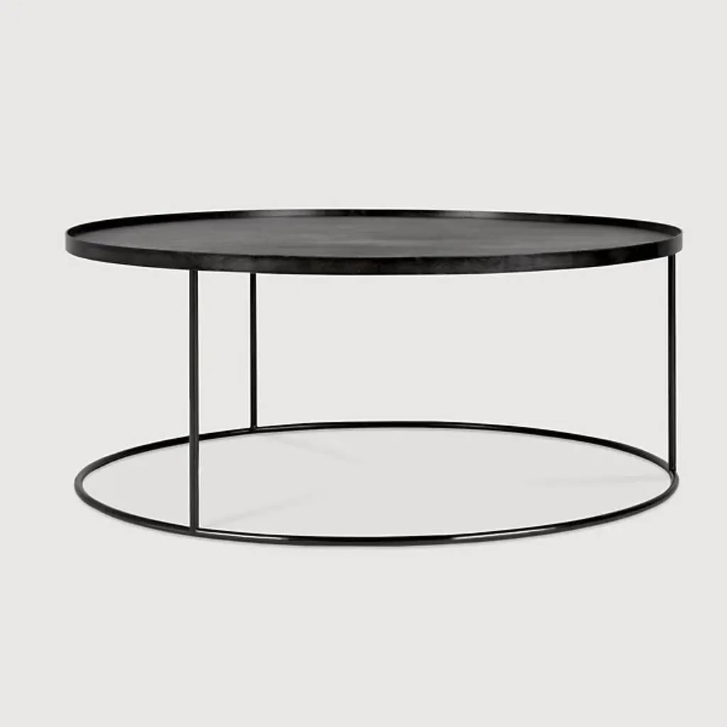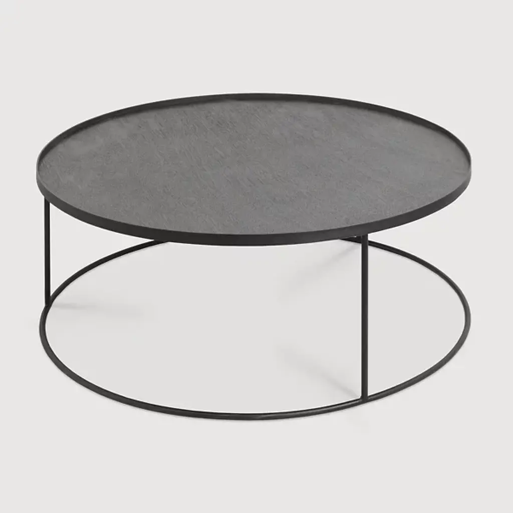 Enjoy a cup of your favorite coffee with the Tray Round Coffee Table by Ethnicraft. This coffee table brings a contemporary aesthetic to your home décor. A fine frame of metal has been elegantly crafted into an open, drum-like shape, forming a beautiful silhouette. A wood top is durably made to support your trays and contain beverages. The edges of the tabletop are slightly raised, giving this furnishment a finishing touch.
