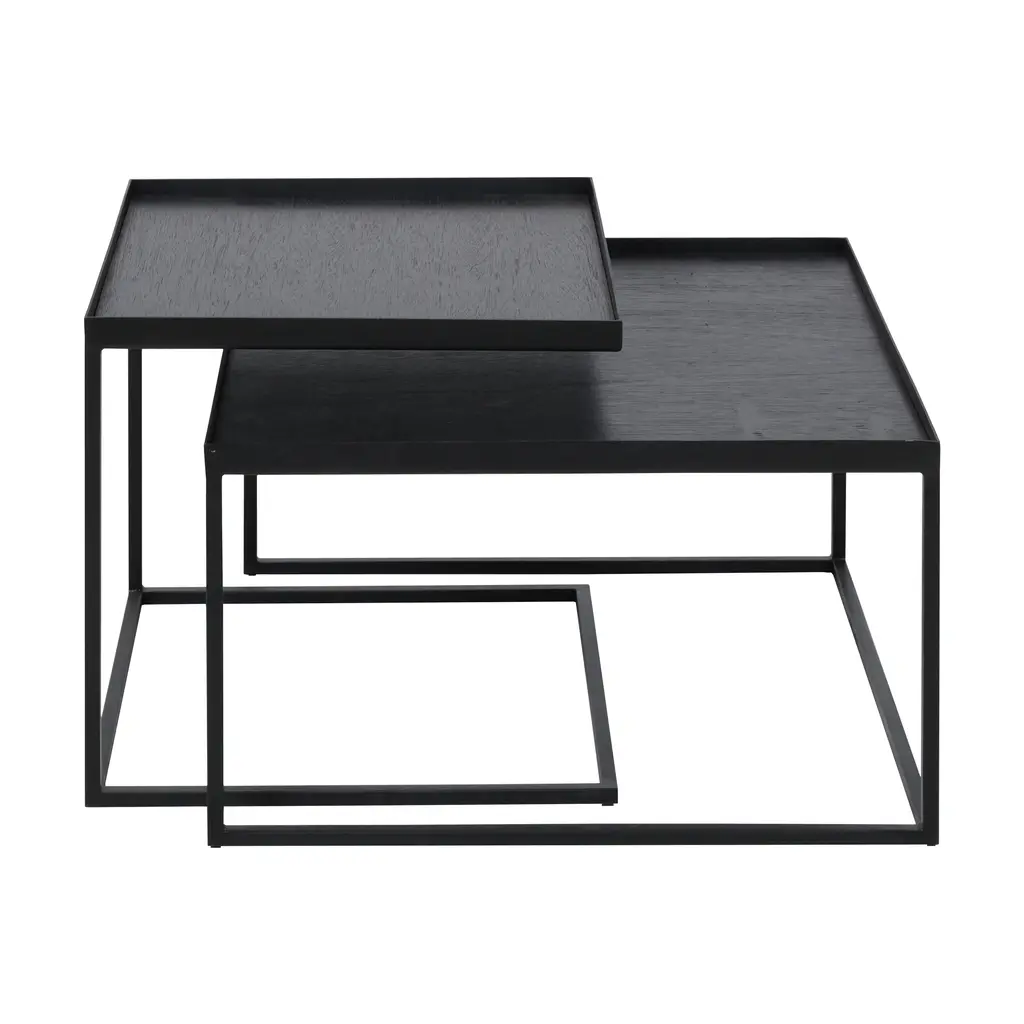 A versatile coffee table set, the Tray Square Coffee Table Set from Ethnicraft offers chic appeal for any room in need of an eye-catching anchor piece. Functioning as a layered pair of coffee tables ready to accent a variety of spaces from the living room, lounge area, or entertainment space, the optional tray of this table can be swapped out for different colors and patterns for a custom design scheme. Crafted from wood with a contrasting black metal frame, this coffee table set can easily accommodate a variety of appetizers and cocktails, or a vase of your favorite blooms, and a stack of books for a relaxing and stylish centerpiece. Highlights