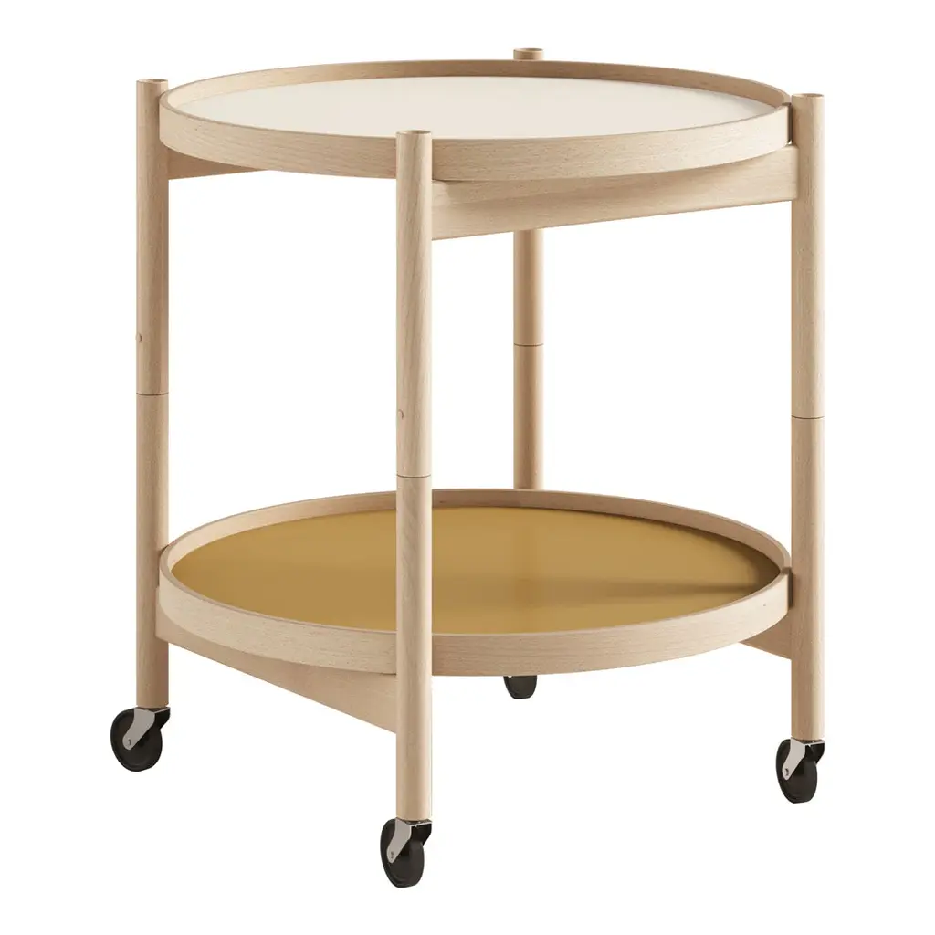 In 1963 Architect Hans Bolling took on the challenge to design a simple and highly functional table, which was easy to assemble and easy to handle. The result was a tray table that perfectly reflects Brdr. Kruger's design philosophy: to craft honest and original designs that are built to last. The Bolling Tray Table owes its wide-reaching success to its emotional and playful qualities. It is flexible and can be used in many ways – as a serving trolley or side table – and rests on a wooden H-frame that can easily be folded without the use of tools. The two reversible trays, of high-pressure laminate plates, can be turned for color variation. And there is a wide range of colors and wood to choose from. The Tray Table is proudly crafted at Brdr. Kruger's own workshop in Denmark.