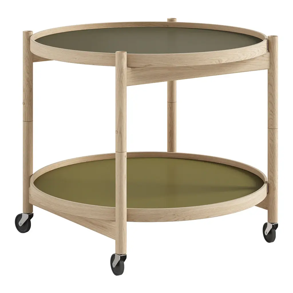 In 1963 Architect Hans Bolling took on the challenge to design a simple and highly functional table, which was easy to assemble and easy to handle. The result was a tray table that perfectly reflects Brdr. Kruger's design philosophy: to craft honest and original designs that are built to last. The Bolling Tray Table owes its wide-reaching success to its emotional and playful qualities. It is flexible and can be used in many ways – as a serving trolley or side table – and rests on a wooden H-frame that can easily be folded without the use of tools. The two reversible trays, of high-pressure laminate plates, can be turned for color variation. And there is a wide range of colors and wood to choose from. The Tray Table is proudly crafted at Brdr. Kruger's own workshop in Denmark.