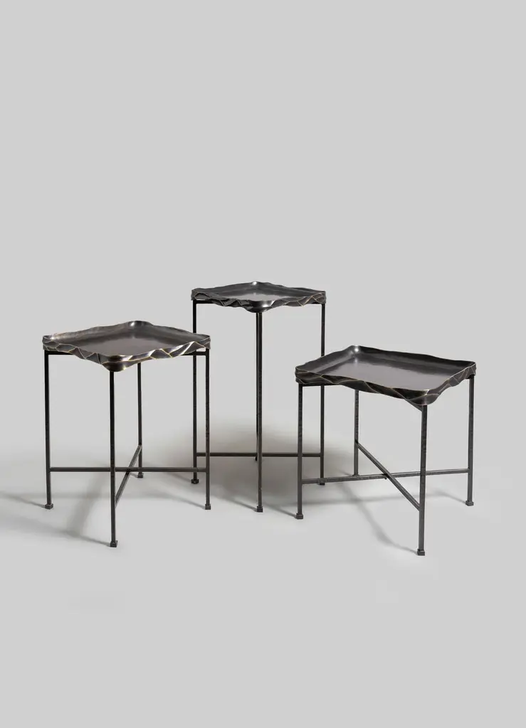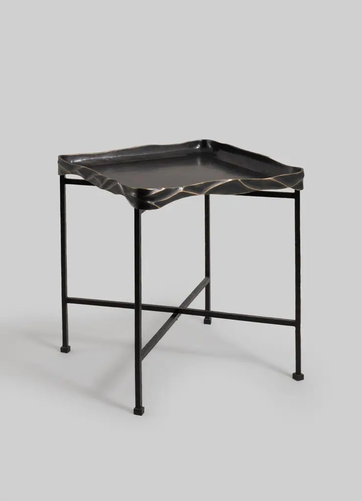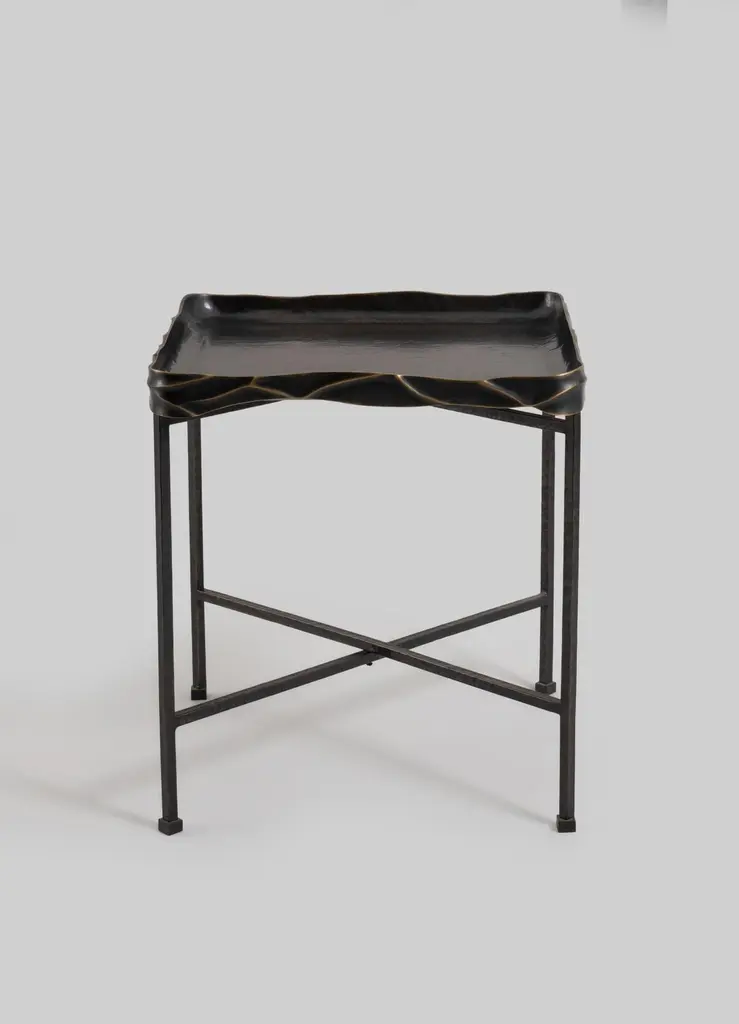 Under The Banyan Tray Table Large in Brass, Viya by Vikram GoyalEchoing ancient whispers of worship, each object captures the essence of the Banyan tree, believed to hold the divine power to fulfil wishes. Crafted with reverence, these pieces pay homage to the tree's sacred names—Vat Vriksha, Bargad, and Bahupata, the latter signifying its multitude of roots connecting earth and heavens. Beyond brass and form, these objects reflect the intricate dance of aerial roots, encapsulating the symbolism of longevity, mortality, and enlightenment.Tray Table in brass. Handmade in India.Product DetailsMaterial: BrassSize: 17.5"L X 17.5"W X 20"H 44.5 L X 44.5 W X 50.8 H cmWeight: 7.8 kg 17.16 lbsNumber of Pieces: 1 Tray TableSKU: VTT106This product has been handcrafted by local artisans. As such, slight variations are a testament to the unique character of a piece made by hand.