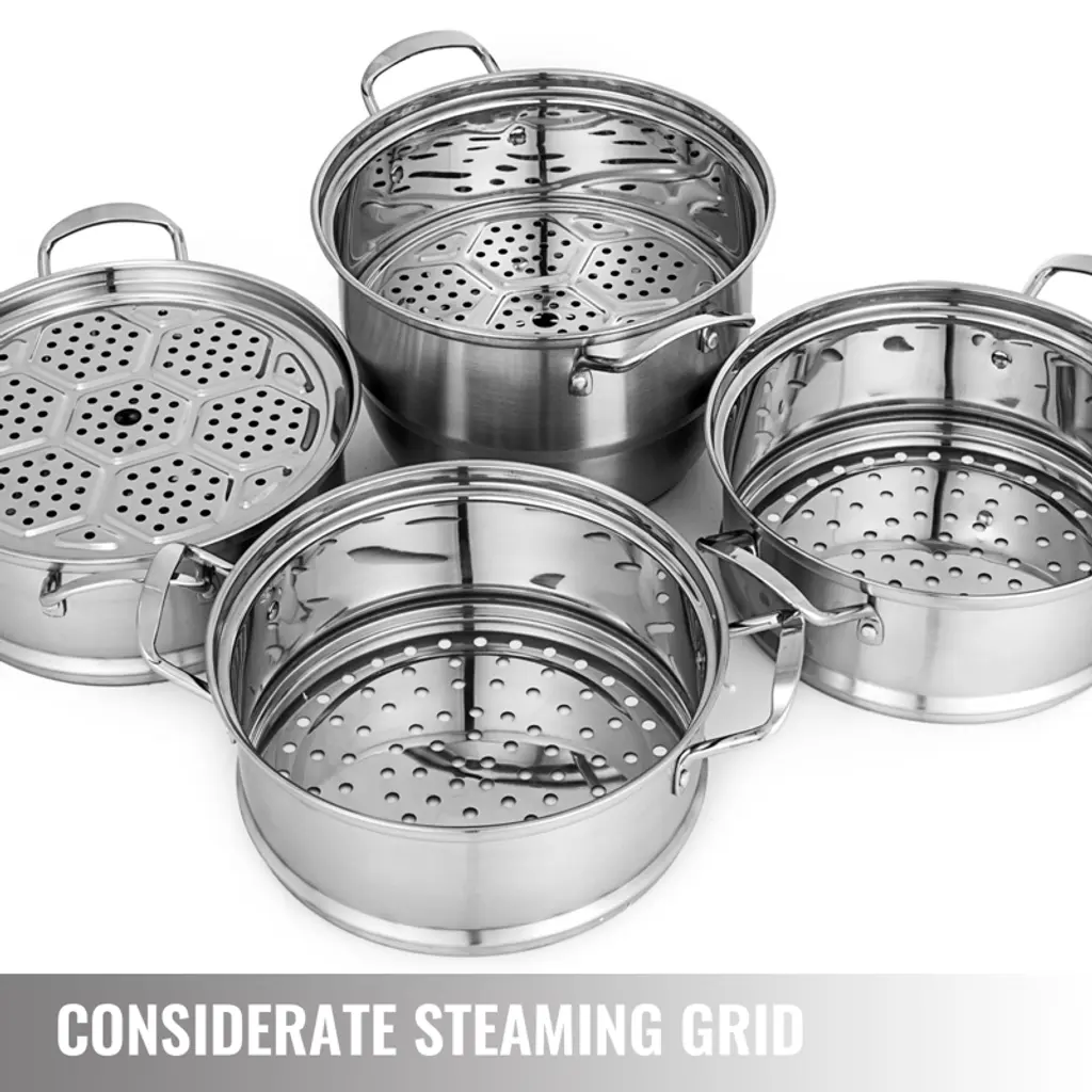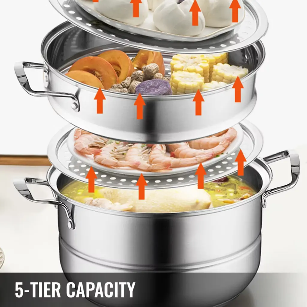 Vevor Steamer Pot 11.8in/30cm, 5 Tier Steamer Pot For Cooking With 10qt Stock Pot, 3 Vegetable Steamers & 2 Steaming Trays, Silver