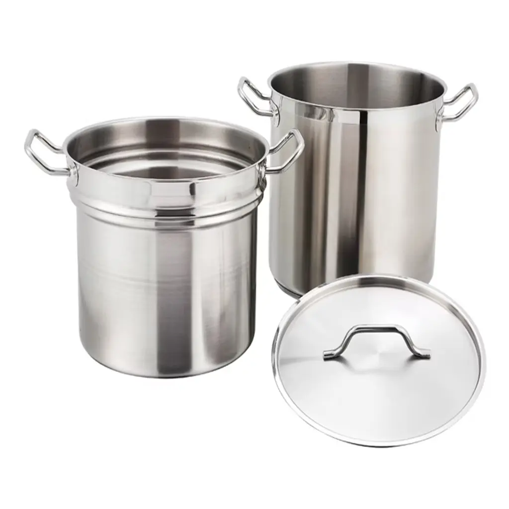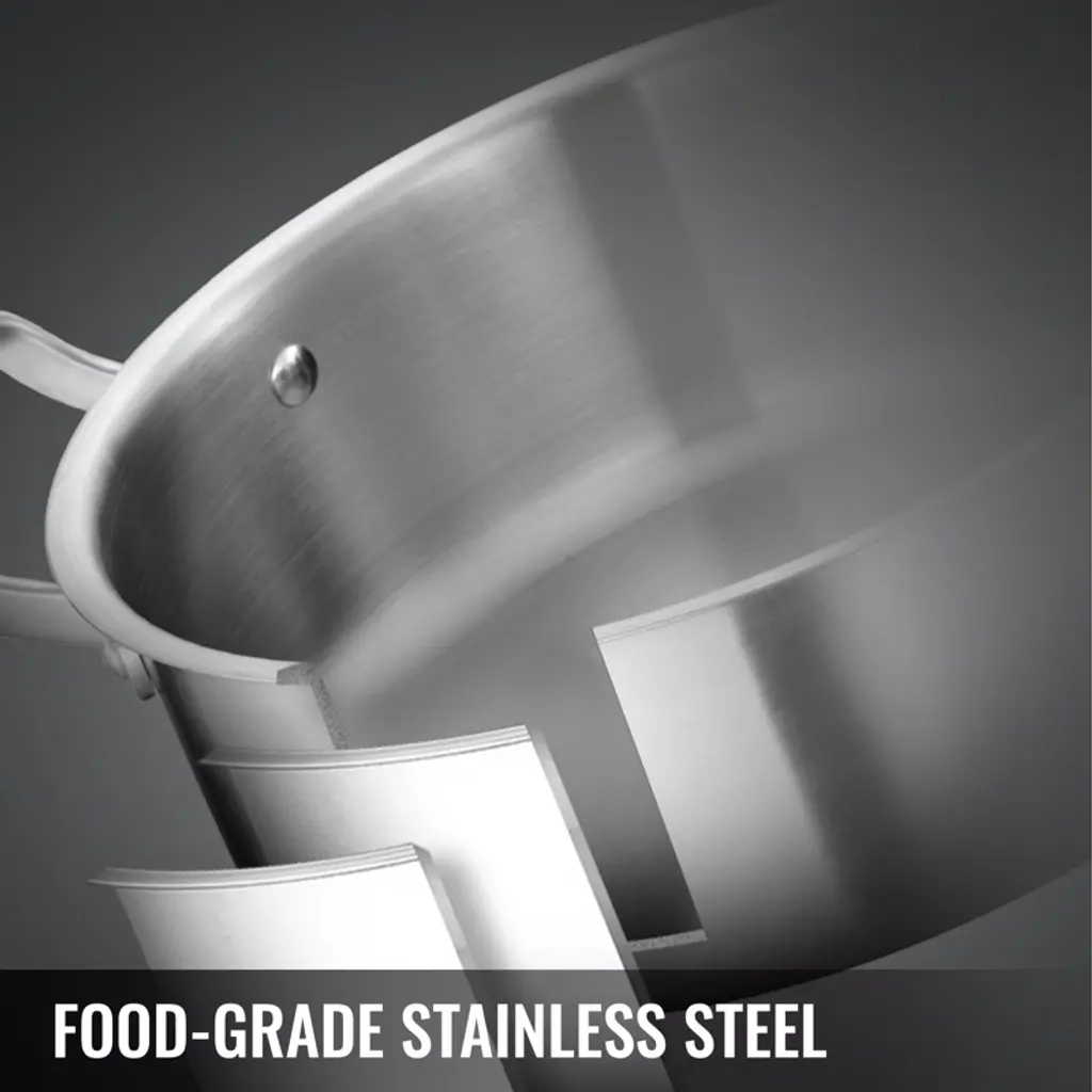 Feature: 【HEAVY-DUTY STAINLESS STEEL MATERIAL】- Constructed from food-grade 304 stainless steel (0.02"/0.58 mm thick), with polished mirror surface, the dumpling steamer is of high thermal conductivity and efficient heating. It is sanitary, durable, and not easy to deform. 【5-TIER LARGE CAPACITY FOR DELICIOUS FOODS】- 5-tier capacity provides enough space to cook much food. The total capacity is up to 38.5 Qt, and the bottom layer can hold up to 7.9 Qt capacity. The other three layers also have a large capacity of 6.3 Qt respectively, which can accommodate your various ingredients at one time. Larger than traditional stockpot steamers, perfect for big gatherings, and commercial kitchens. 【COMPATIBLE WITH MULTIPLE STOVES】- The bottom of the steam pot is made of 3-layer composite material, making it superbly energy-efficient, so it cooks evenly without hot spots. It is suitable for most stoves, including gas stoves, induction cooker, electric ceramic stoves, halogen stoves, etc. 【HEIGHTENED LID & CONVENIENT HANDLES】- The dome-shaped lid allows steam to re-circulate, reaching all tiers, featuring 3.7-inch height for larger cooking space. The visible pot lid made of tempered glass allows for easy observation of the internal food. The evenly distributed steam holes boost the throughput of steam and prevent steam water from accumulating. The sturdy riveted handles keep cool and facilitate convenient food-taking. 【VARIOUS COMBINATIONS FOR SPACE SAVING】- It can be a steamer for foods, a stockpot for soups, and the steamer pot can double as a colander for straining and washing foods. The steamer for cooking can be separated into five different pots (4-Tier/3-Tier/2-Tier/Single-Tier Steamer, Stock Pot), to meet your different demands. The proper stacking will provide you larger storage space. Package Content: 1 x Stock Pot 3 x Steamer Pots 1 x Pot Lid 2 x Septa