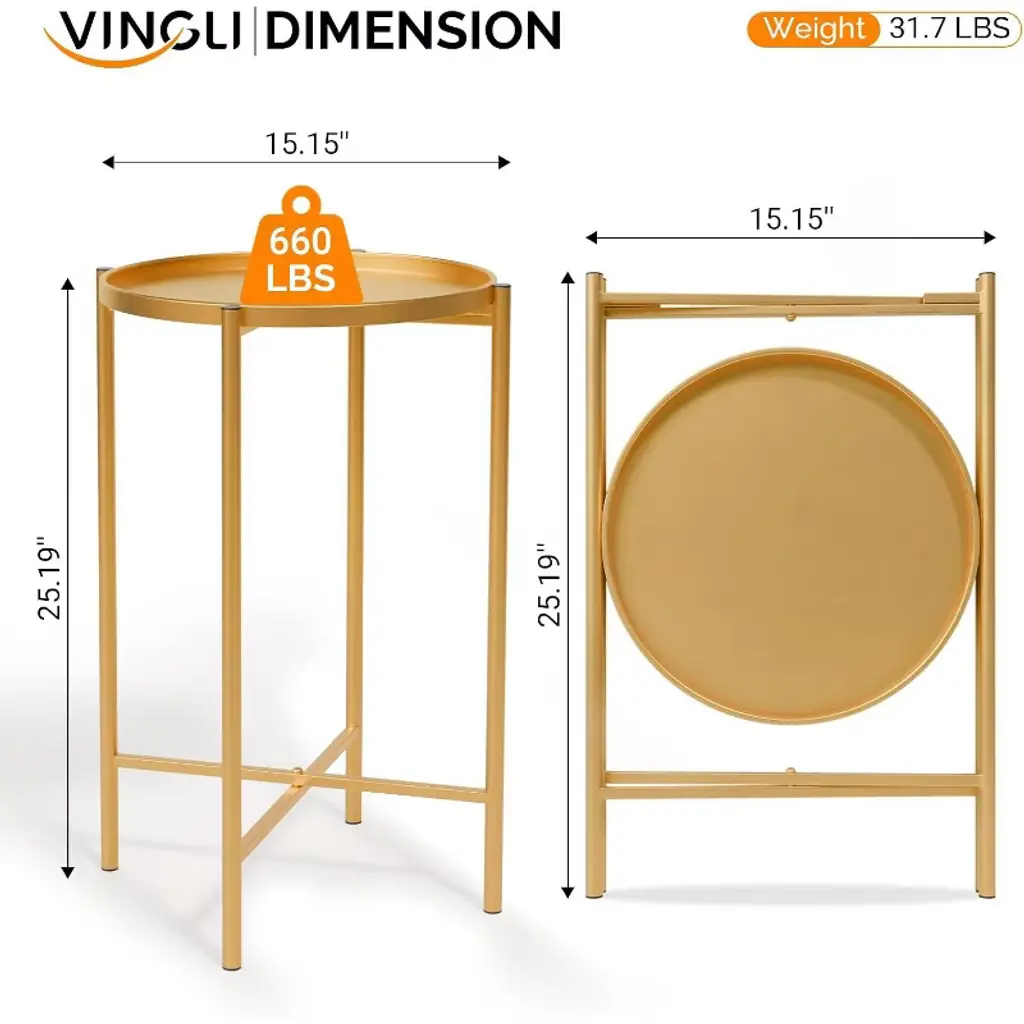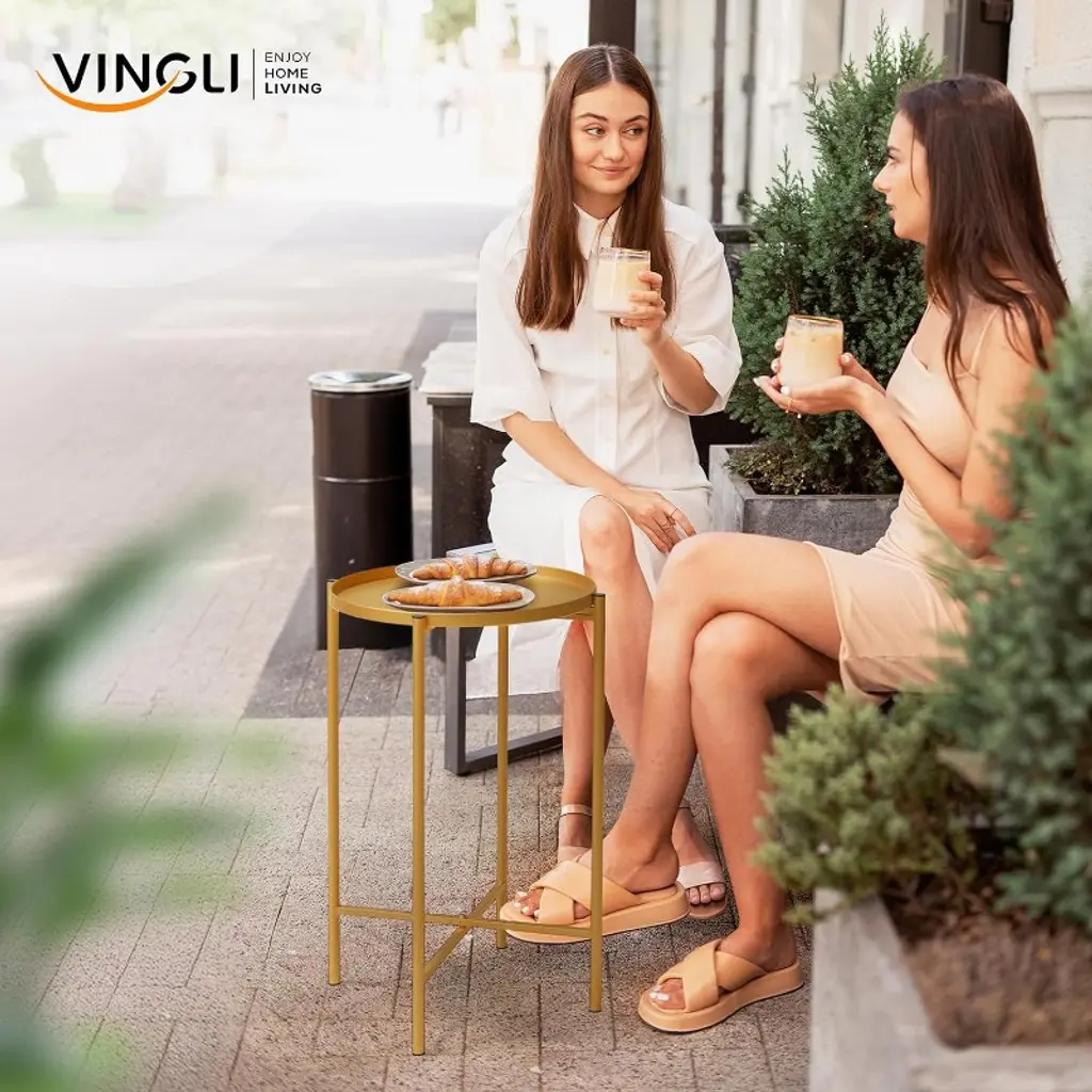 Vingli Round Metal Side Table With Removable Tray, Outdoor Patio Coffee Table For Small Spaces, Outdoor Patio, Living Room (X-brace & Non-slip Pads)