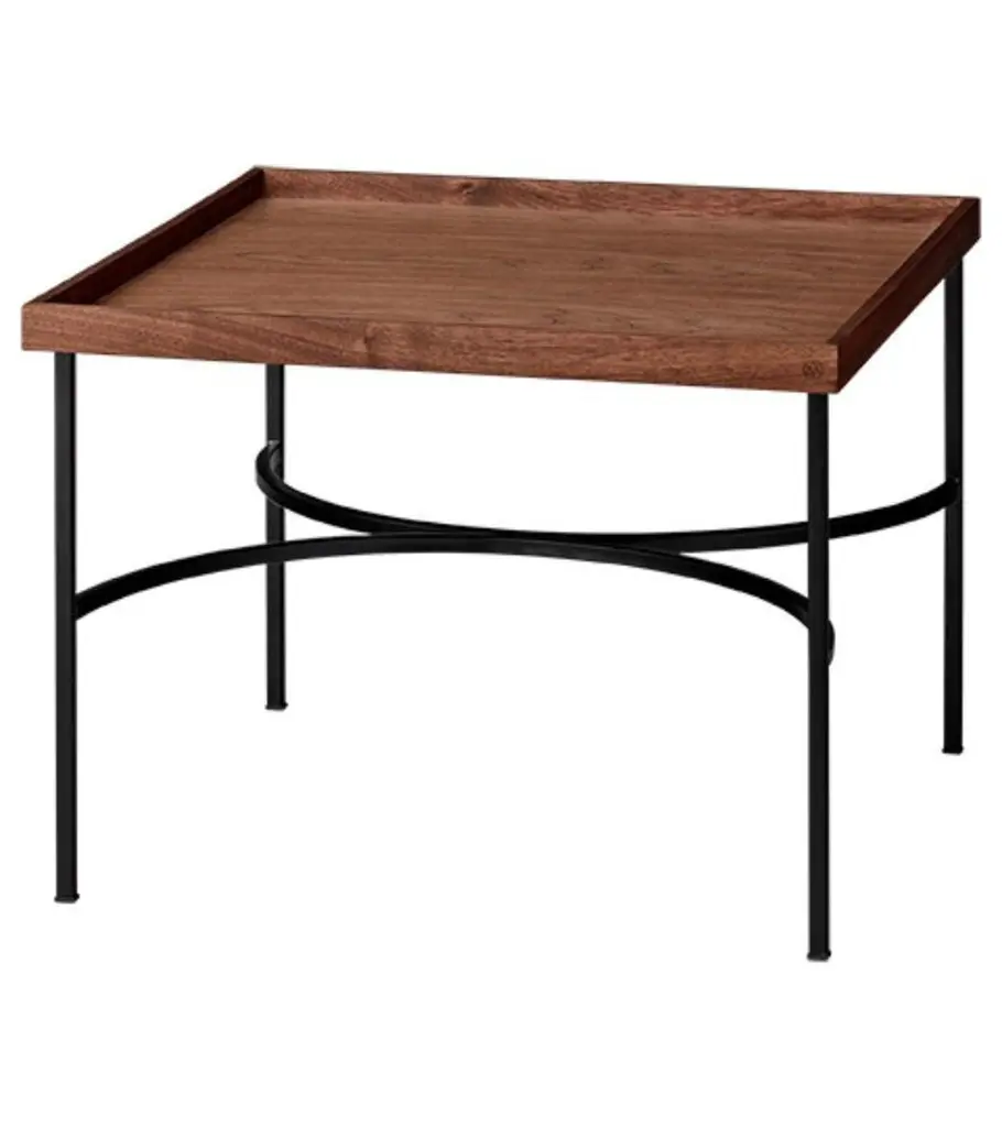 Walnut and black contemporary tray tableDimensions: D 52.5 x W 52.5 x H 38 cm Materials: Natural walnut, iron with powder coating, or iron with brass plating.Available in black, oak, walnut, and black or gold powder-coated base.Impeccable quality and sophisticated shapes are some of the many features of this beautiful Unity tray table. The variety of colors of metal frames and wooden will ensure the personalization of your style. We recommend enrichment of your Unity table with decorative and highly functional Unity trays that come in many surprising shapes and a variety of lovely colors.