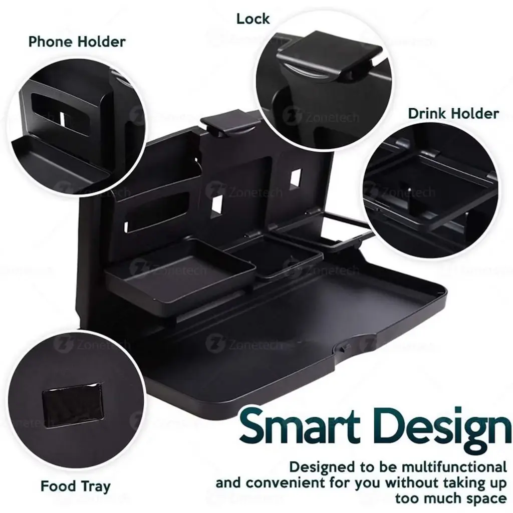 Zone Tech Multi-functional Portable Foldable Car Backseat Tray Desk - Black Portable Car Back Seat Tray Table For Food, Meal, Snack, Laptop