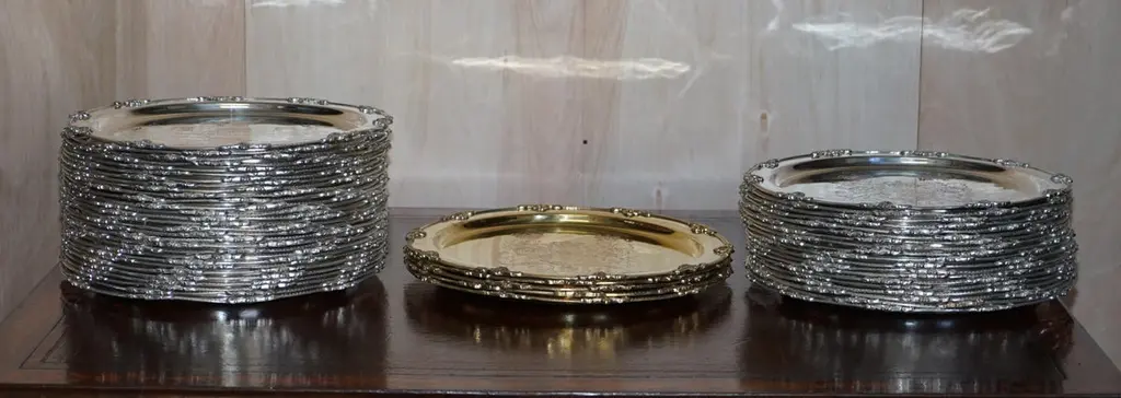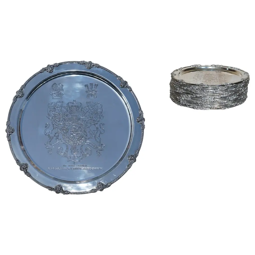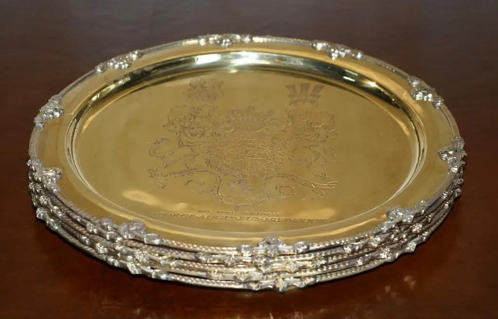 1 Of 4 King George Auguseue Frederick Arms Gilt Sterling Silver Plated Trays