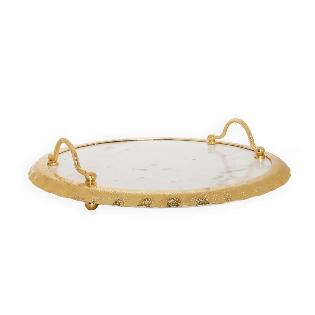 Excite every occasion and celebration with this outstanding and unique round marble tray with gold edge and handles. Its Beautiful ruffled border and classic shape along makes it some amazing and beloved gift for family and friends. Its sturdy enough for everyday use, as well as elegant enough for special occasion.