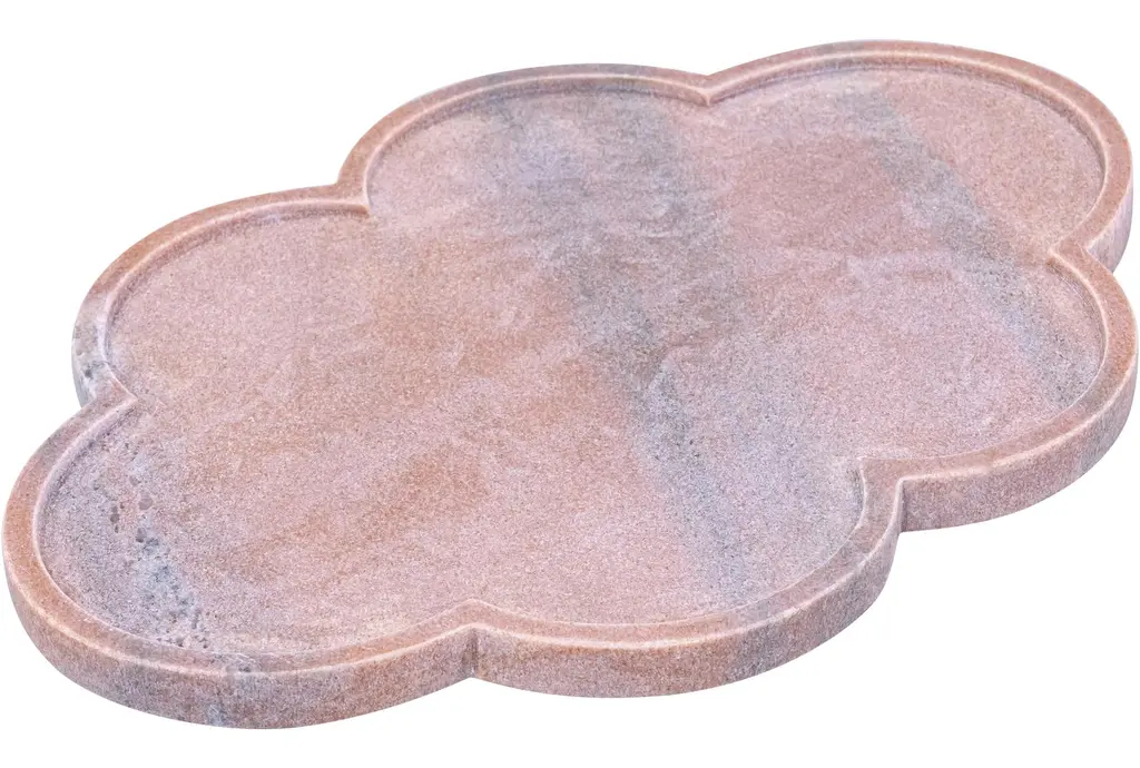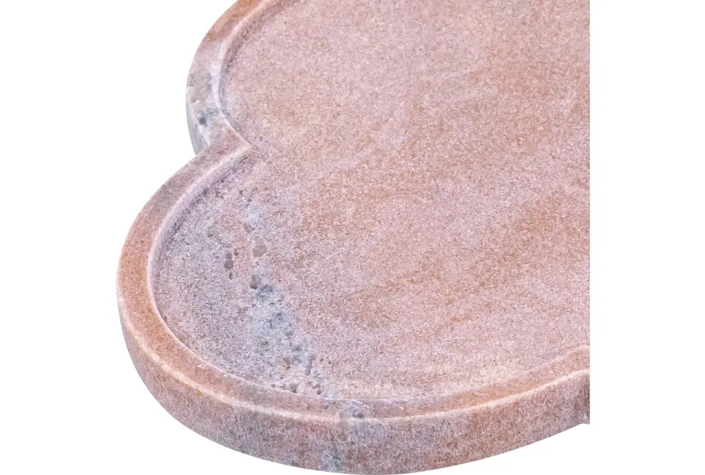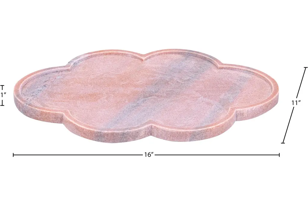 Enhance your home decor with the 16" X 11" Rimini Pink Clover Shaped Marble Tray. This modern piece is perfect for adding a touch of sophistication to any space. Its unique clover shape and soft pink color make it a standout addition to your collection.