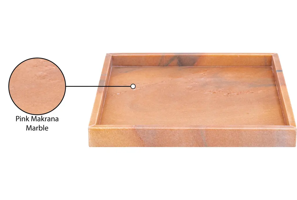 The 16" X 16" Barletta Pink Square Marble Tray is a stunning addition to any modern or contemporary space. Crafted from genuine pink Makrana marble, this tray combines elegance and functionality. Perfect for use as a tabletop accessory, it adds a touch of sophistication to your decor.