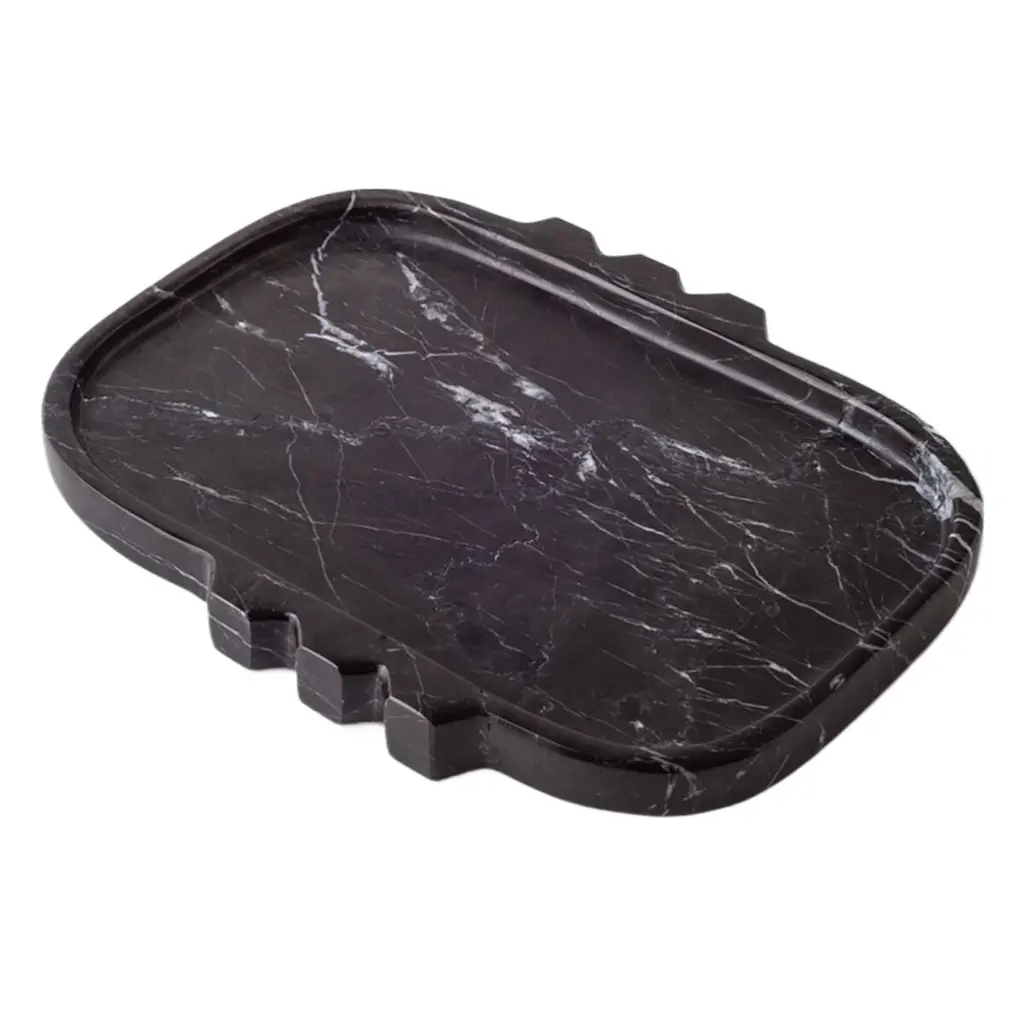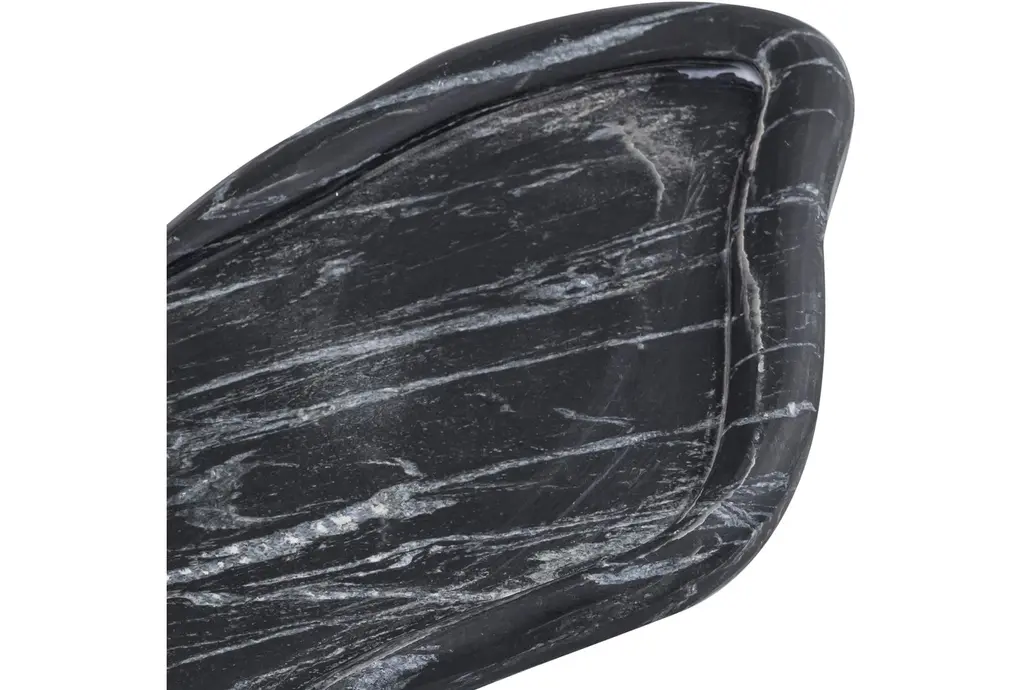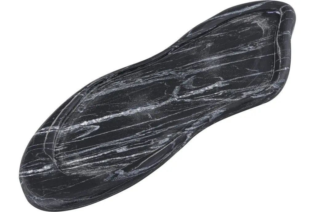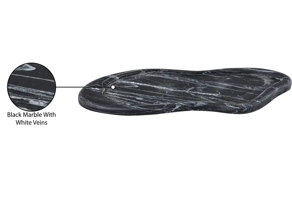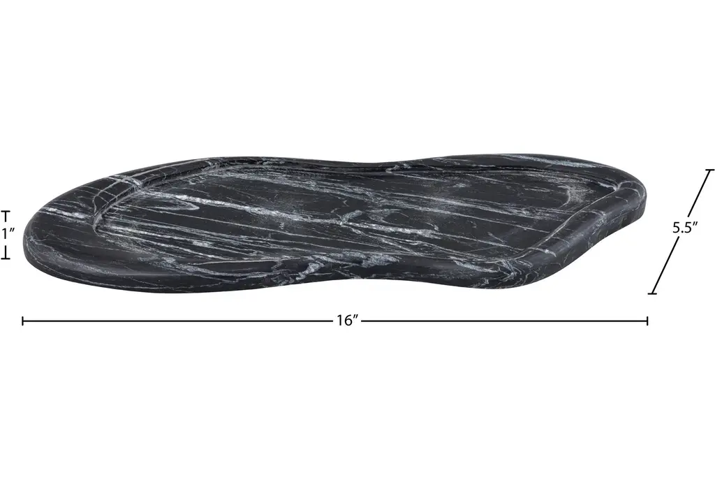 The 16" X 5" Arezzo Black Marble Tray brings a touch of modern sophistication to your home. Perfect for daily use, this tray is both functional and stylish. Its organic shape and natural contemporary design make it a versatile addition to any room.
