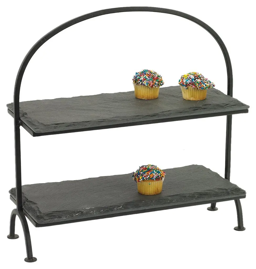 Whether used for serving delicacies or displaying favorite objets, this three-tier tray is a simply elegant option, crafted in slate.