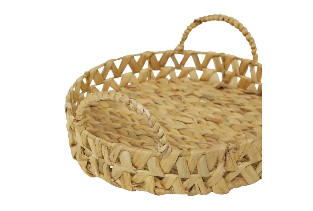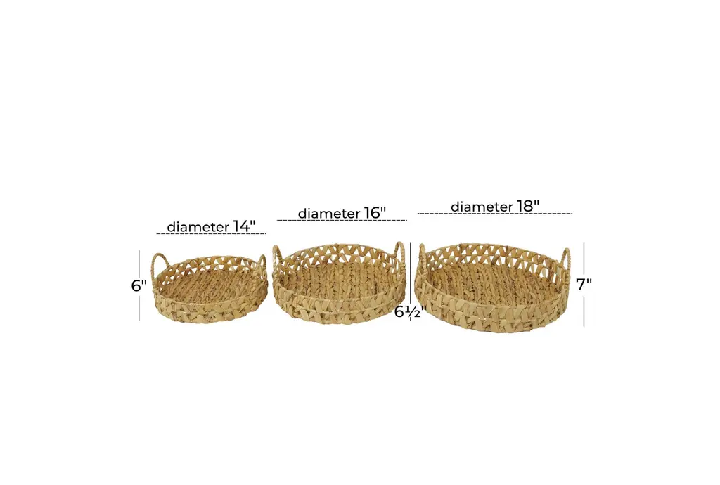 19" Brown Seagrass 3 Piece Set Handmade With Handles Decor Tray