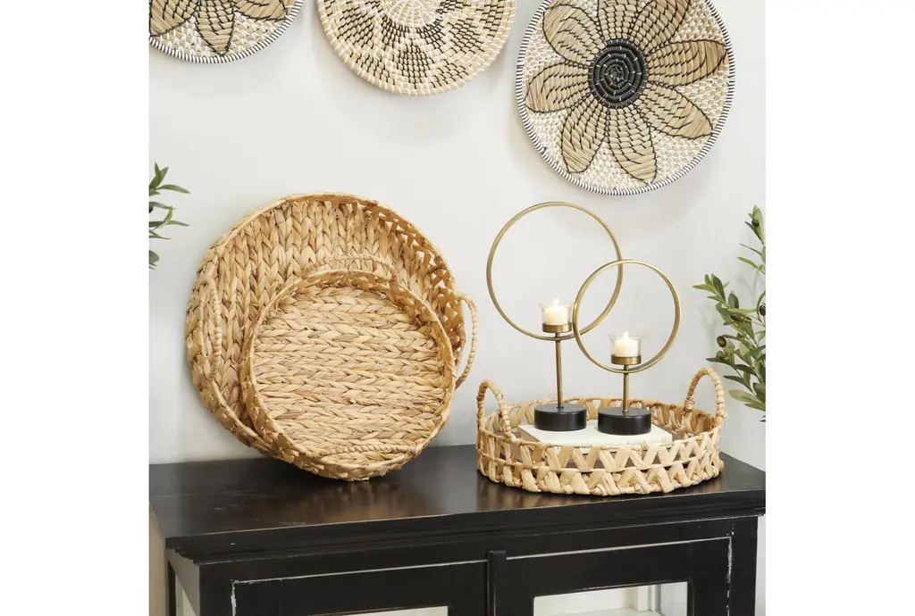 Enhance your home decor with the 19" Brown Seagrass 3 Piece Set Handmade with Handles Decor Tray. This beautiful set is inspired by the blissful serenity and allure of the sea, bringing soothing hues and natural textures to your living space. Crafted from durable and sustainable seagrass, these trays are both functional and stylish, perfect for any room in your home.