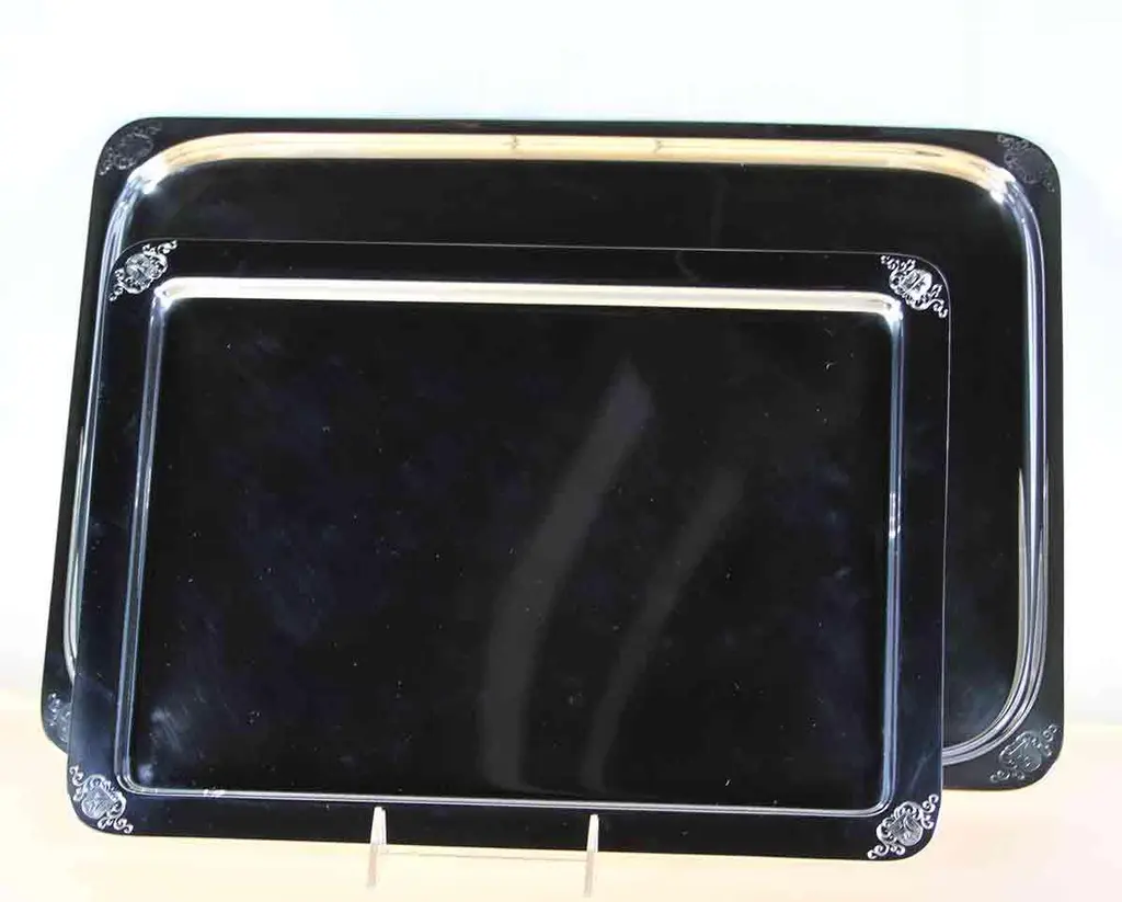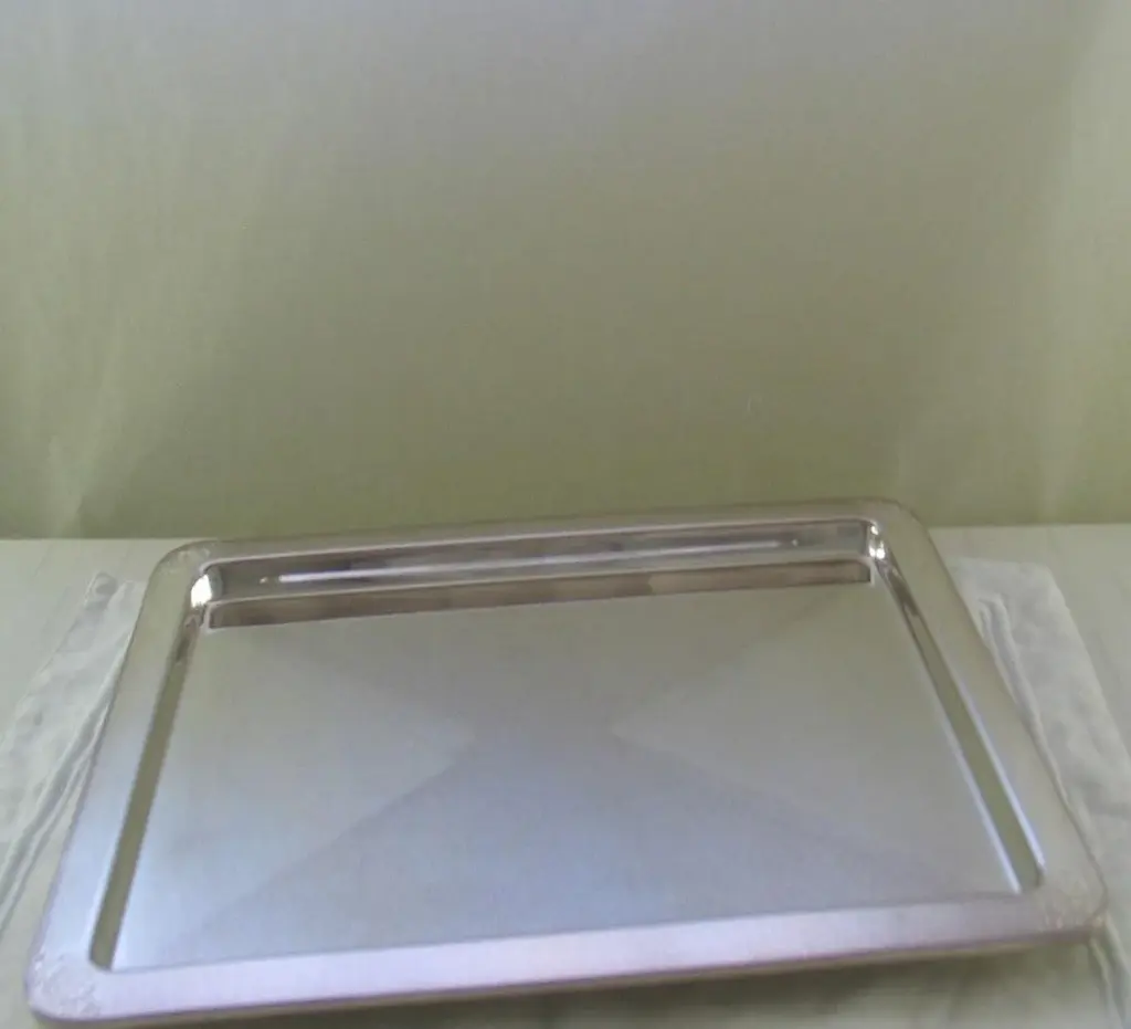 Ref # HK Lindt/S Photo 428 bis "We Take Pride in Offering Exclusive Products, New not Used" "The Finest Silver Quality Ever Made in Sheffield-England“ Description: Silver Oblong Trays, Engraved Corners 15 in. Pattern : Lindt Engraved Corners Size : 15 in. Electro Plated on E.P.N.S. , a quality silver plated on Nickel Silver Made in Germany by Hohmann & Katz Specially for the Lindt Chocolate Company in Switzerland Marked : Hohmann & Katz Retail Price : $ 820.00 Wholesale : $ 410.00 Quantity Available : 23 N.B. Hohmann & Katz a distinguished silver company in Pfotzheim Germany; supplier to the finest Silver and Jeweler stores in Germany and abroad. Silver is Eternal, the Silver Glow & Patina is agreeable to the Eye. Quality Silver & Sterling Silver are Heirloom, will be Enjoyed & Treasured from Generation to Generation. “. ABOUT US We at Guilde des Orfèvres, Ltd. had a Showroom in 225 Fifth Avenue in New York; we introduced the finest European products to the US market. We supplied the Finest Stores Nationwide, such as: Tiffany, Bergdorf Goodman, Scully & Scully, Bernardaud, in New York; Betteridge Jewelers, in Greenwich; Connecticut; Schreve, Crump & Low, in Boston; Mary Mahoney, In Palm Beach, Florida; Geary’s, in Beverly Hills and Gump’s, in San Francisco, California. The Story Behind These Magnificent & Exceptional Sheffield Plate Items is Fascinating : Purchased directly from the Silver Manufactures in London, Sheffield & Birmingham-England in 1970's. They are in the original factory packaging, were at a storage in Greenwich, CT for almost forty (40) years. They surfaced to the market when most of the manufacturers are now defunct!? “ They Are Not Available Anywhere Else “ The Hohmann & Katz company is now defunct. Condition :New - Original Factory packing from the 1970's