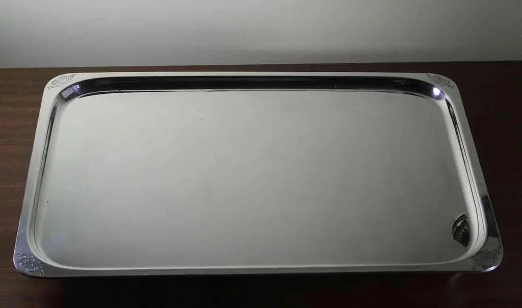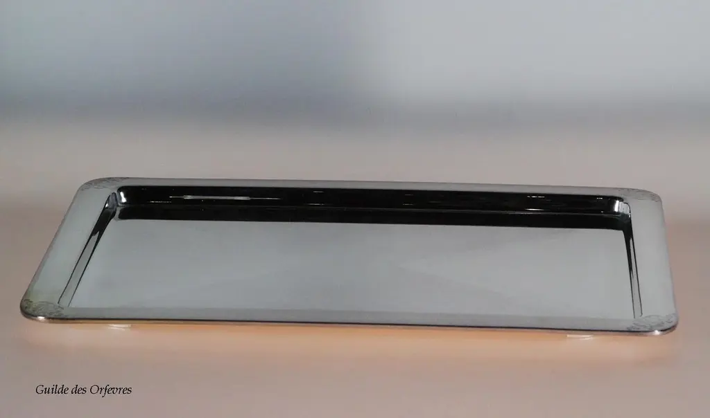 1970s New Lindlt Silver Oblong Tray With Engraved Corners