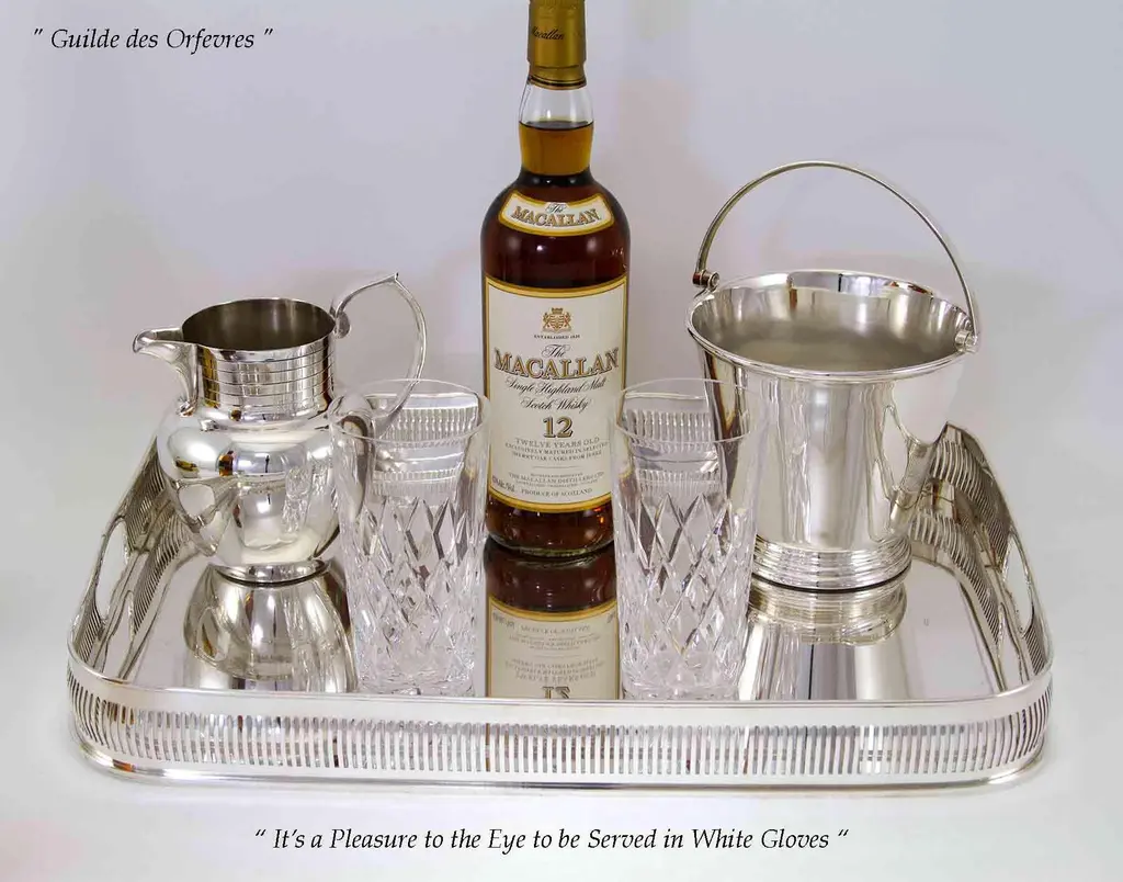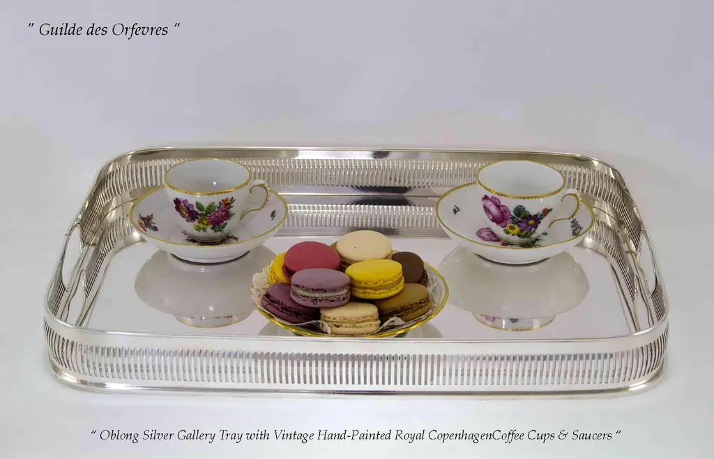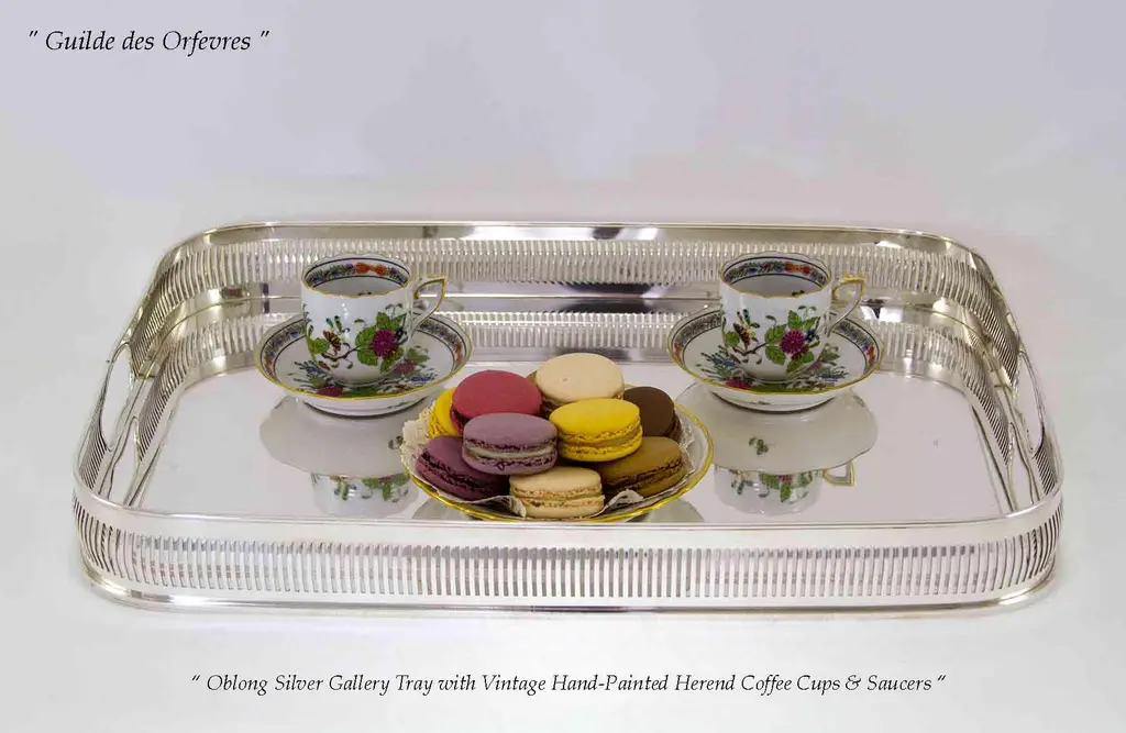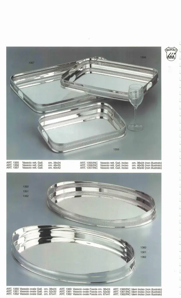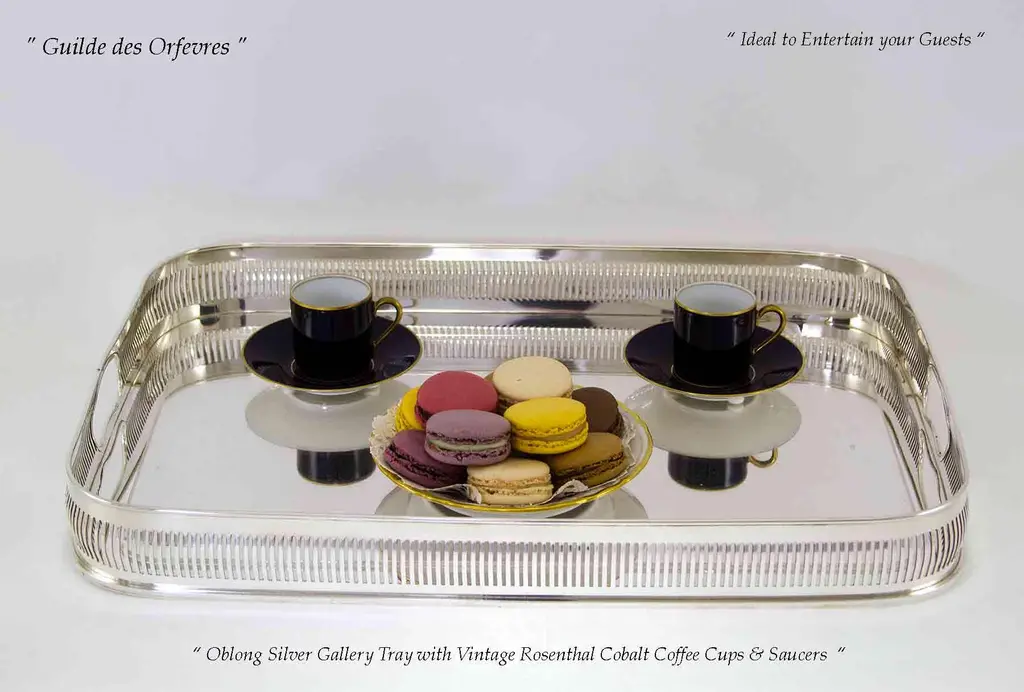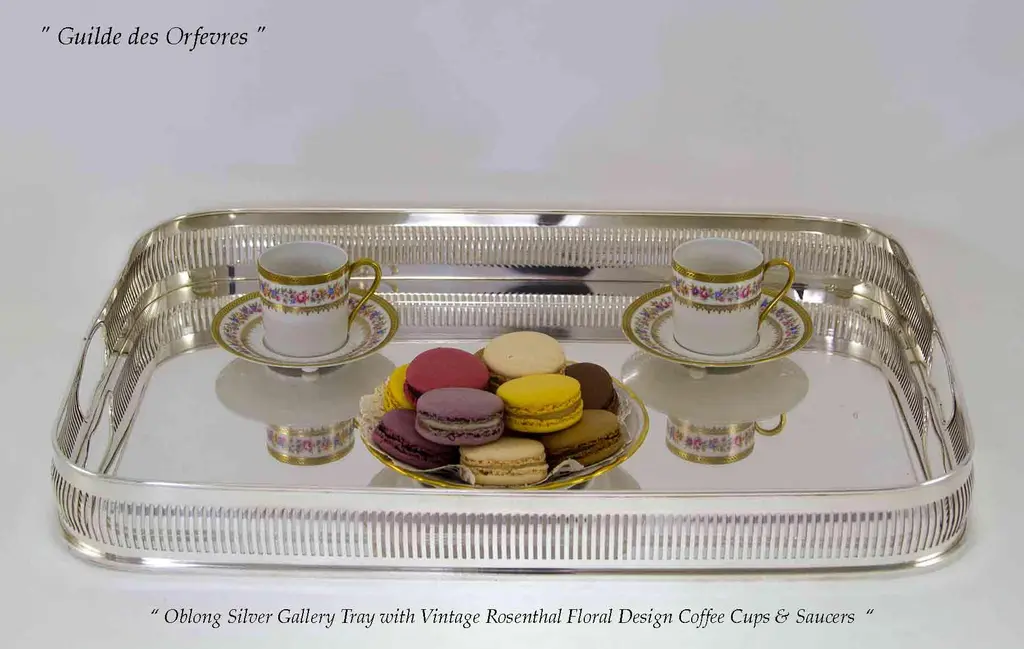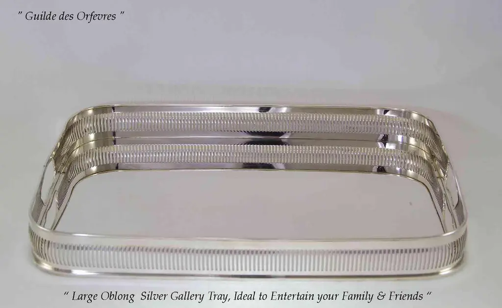 "We Take Pride in Offering Exclusive Products, New not Used" "Condition : New Factory Original Packaging" Ref # V/ 1357 Photo 417 Description : Silver Oblong Gallery Tray, Plain & Pierced Border Pattern : Gallery - Size : 20.5 x 13 in. A Quality Medium Size Silver Tray, Beautifully Designed, Ideal to Entertain your Guests. Made by Teghini for Valsodo, Florence-Italy - Marked : Teghini or Valsodo Retail Price : $ 890.00 Wholesale : $ 490.00. Quantity Available : 3 Valsodo is a distinguished silver company in Florence, Italy, supplier of Fine Stores in Italy and around the world. The Valsodo Collapsible Stands & Trays were promoted by the Bernardaud store on 59th Park Avenue, were advertised in the New York Times,. They were sold in the finest U.S. StoresRef # Condition :New - Original Factory packing from the 1990's