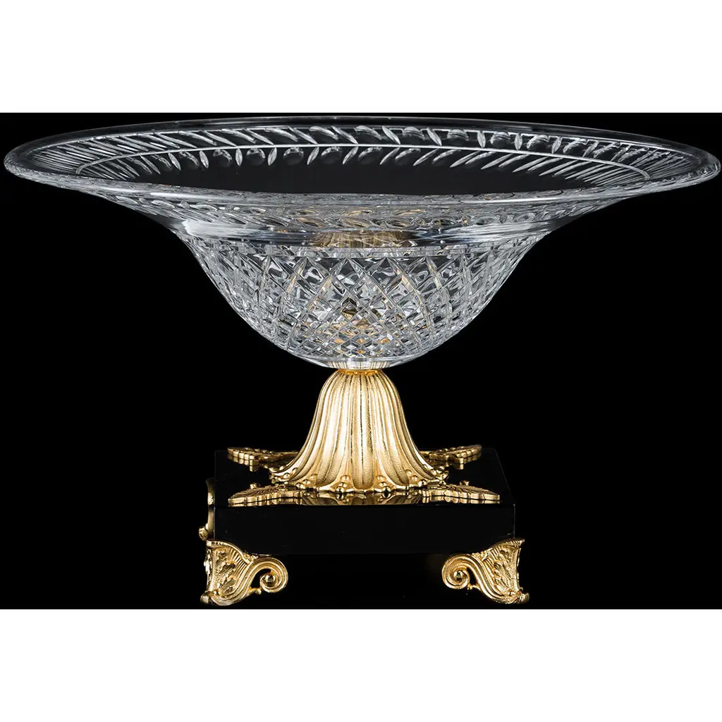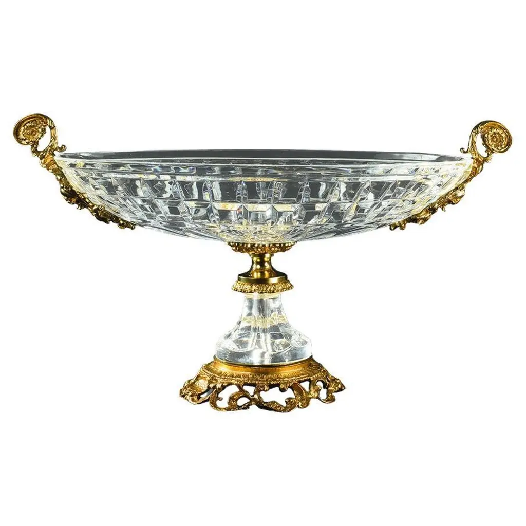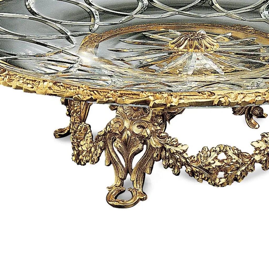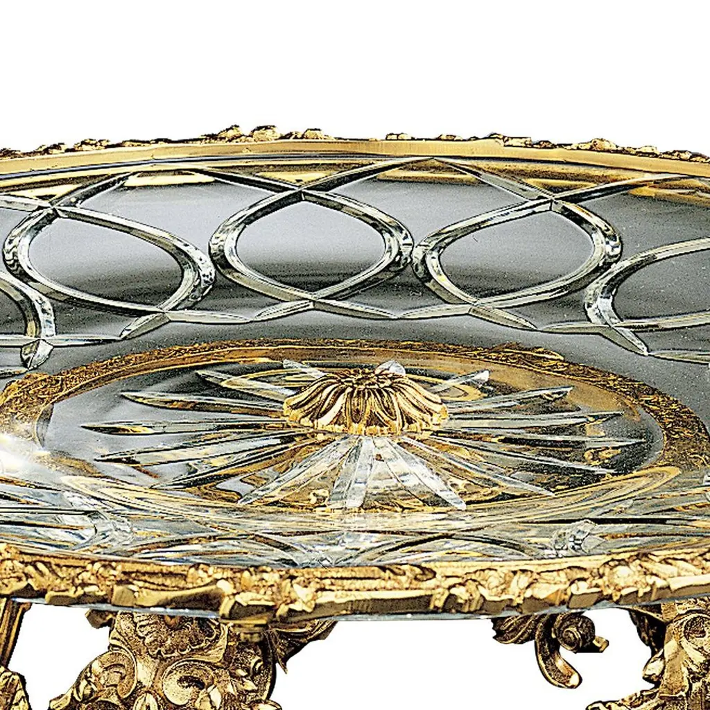 21st Century, Hand-Carved Clear Crystal And Golden Bronze Tray In Classic Style