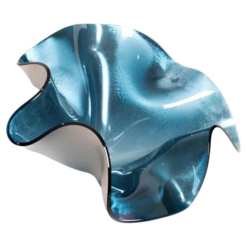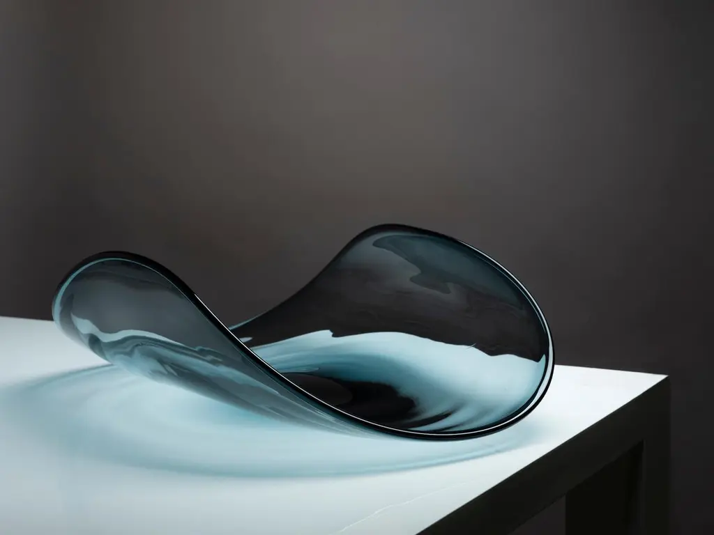 Stua is the new tray / centerpiece from the Laguna collection designed by Ludovica+Roberto Palomba for Purho in spring 2023.Characterized by organic shapes inspired by the rounded and harmonious profile of shells, Stua — which in Venetian dialect refers to a type of shell — enhances the transparency and suggestion of Murano glass through the formal simplicity and linearity of the artifact: a glass disc folded with grace and apparent simplicity translated in a functional and decorative object at the same time.Made in natural colours suggested by the sea — crystal, deep blue and steel gray — and in a glossy finish, Stua complements the Laguna Collection launched in spring 2022, giving life to a composite set of vases and objects with natural shapes inspired by the canals, bights, sandbanks of the lagoon landscape surrounding Murano.