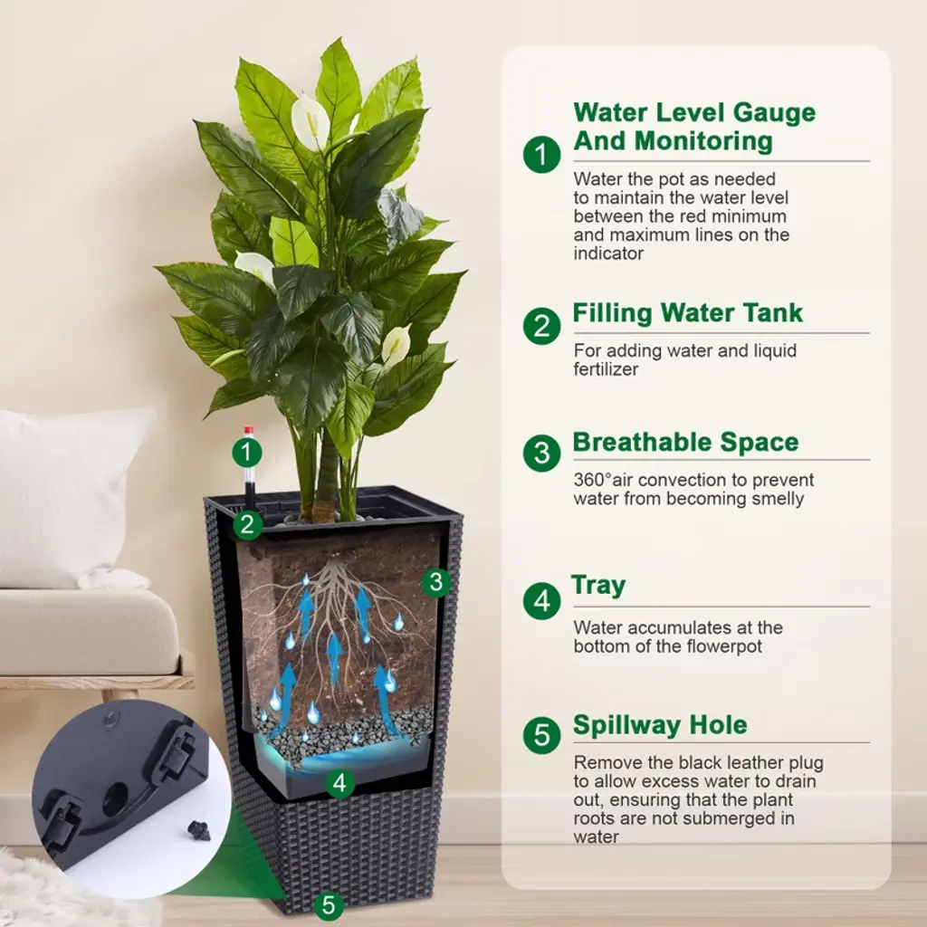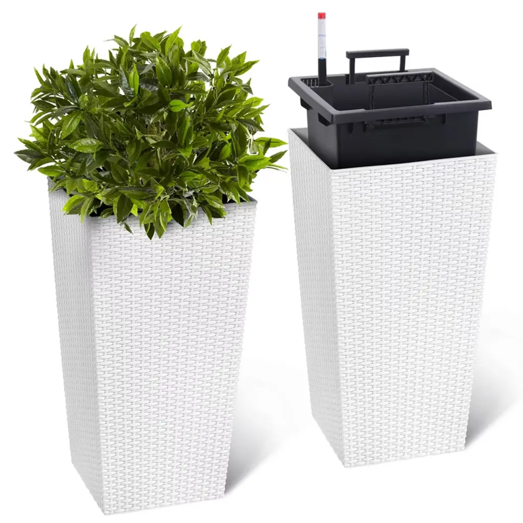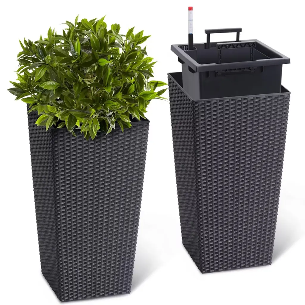 22.5 Inch Outdoor And Indoor Tall Planter Set Of 2 Large Rattan Flower Pot With 2 Trays