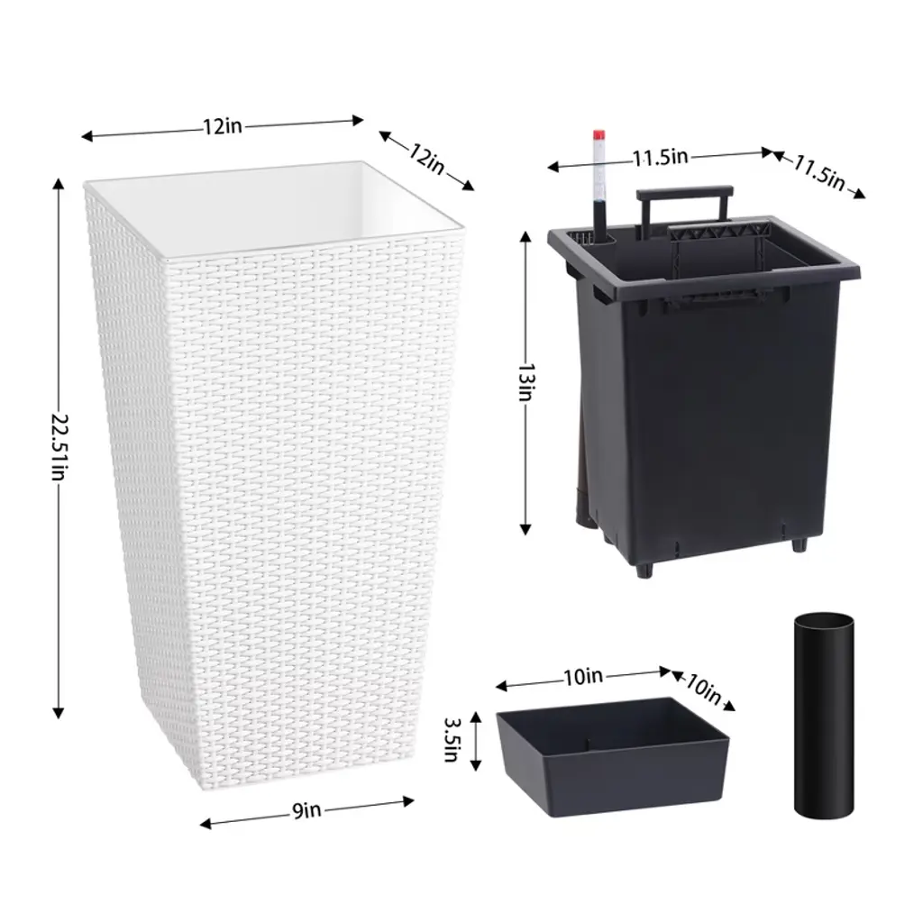 22.5 Inch Outdoor And Indoor Tall Planter Set Of 2 Large Rattan Flower Pot With 2 Trays