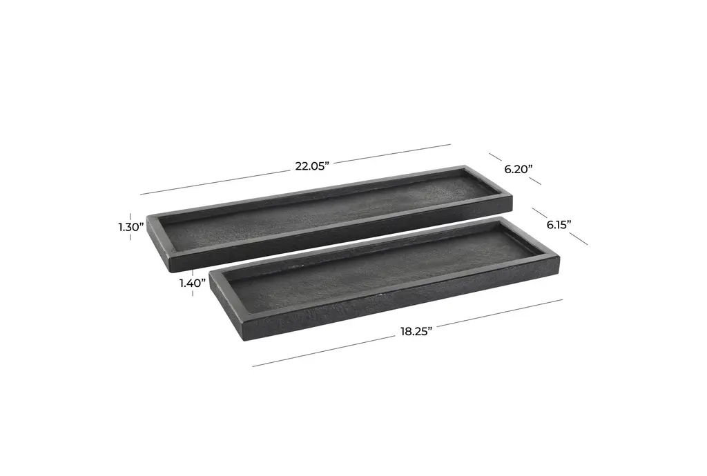 22" Black Marble 2 Piece Set Textured Decor Tray