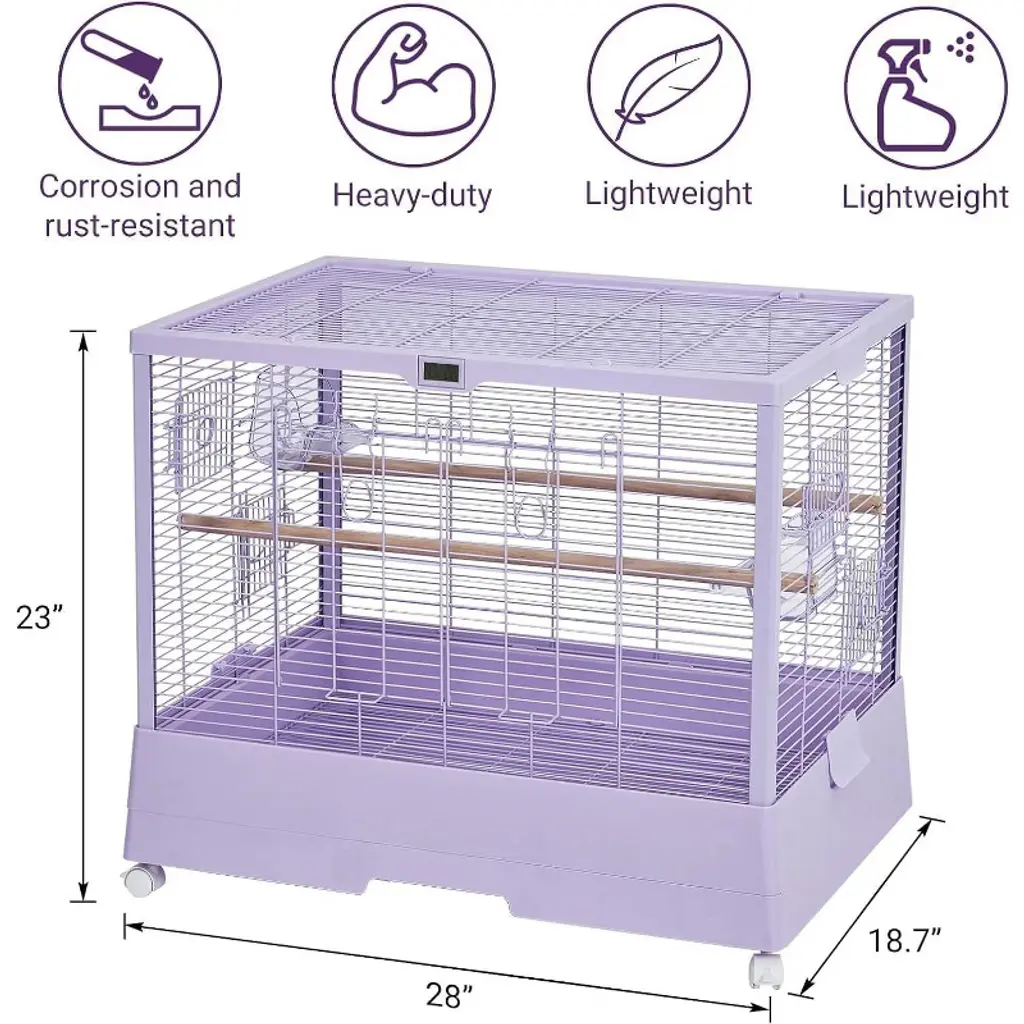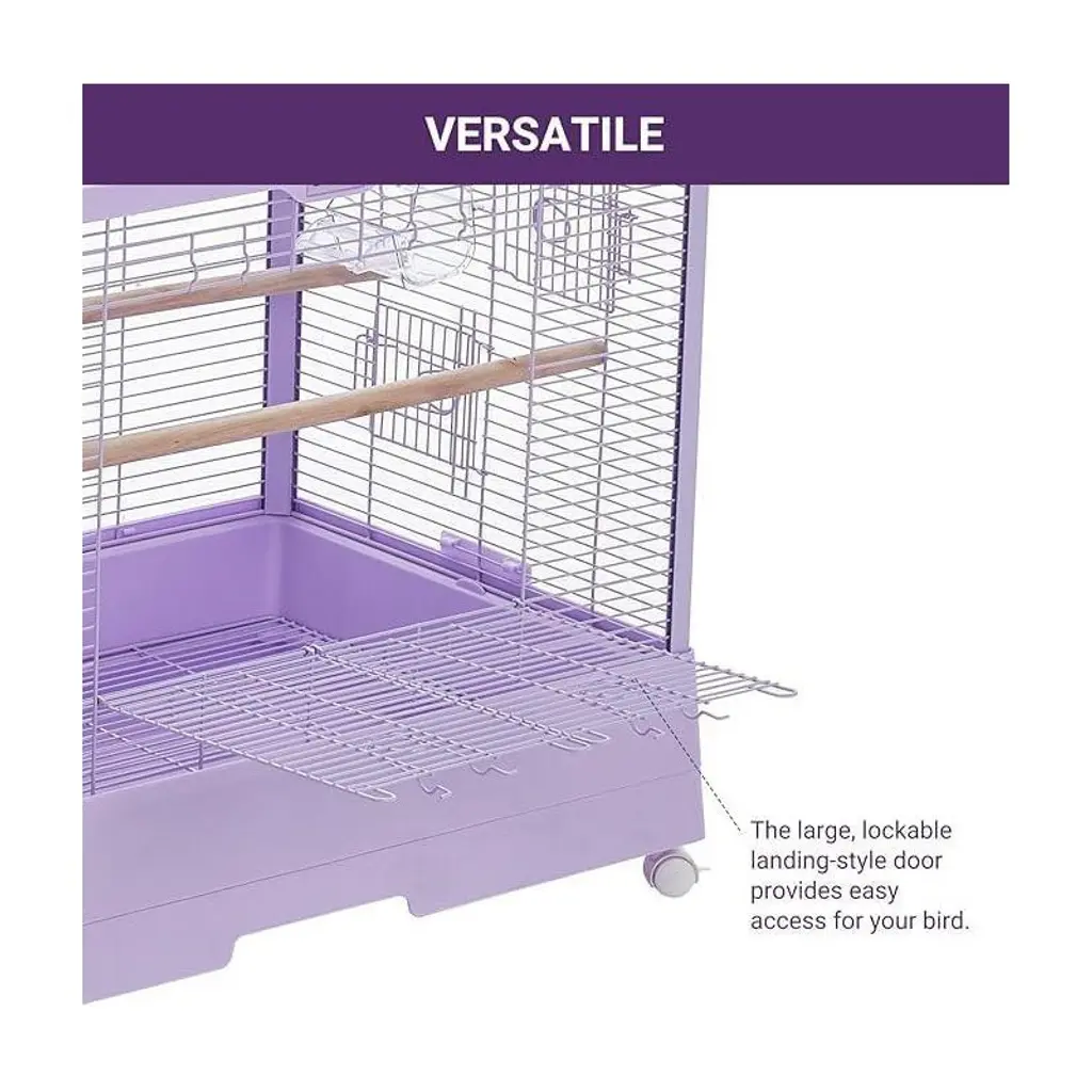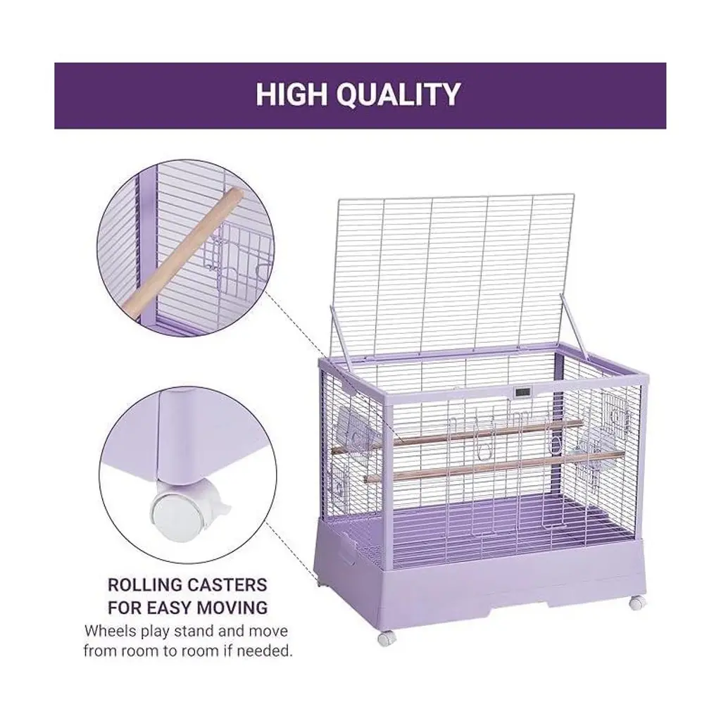 23 Inch Bird Cage, Tall Iron Bird Cage With Rolling Stand, Spacious 28 X 18 X 23 Inch, Lockable Casters, External Feeders & Removable Tray