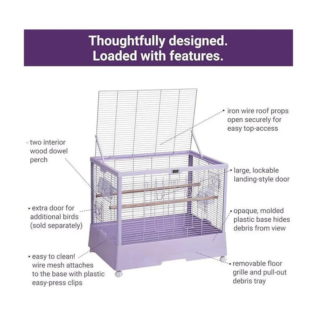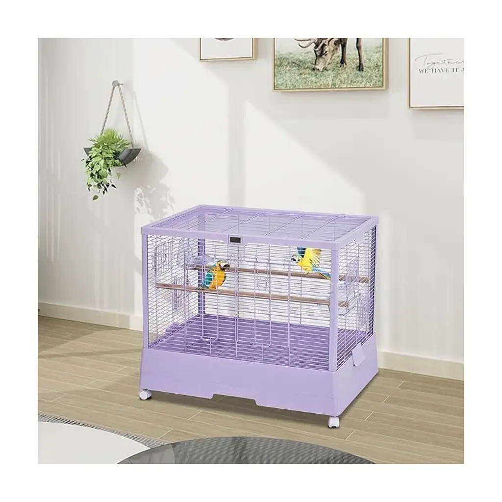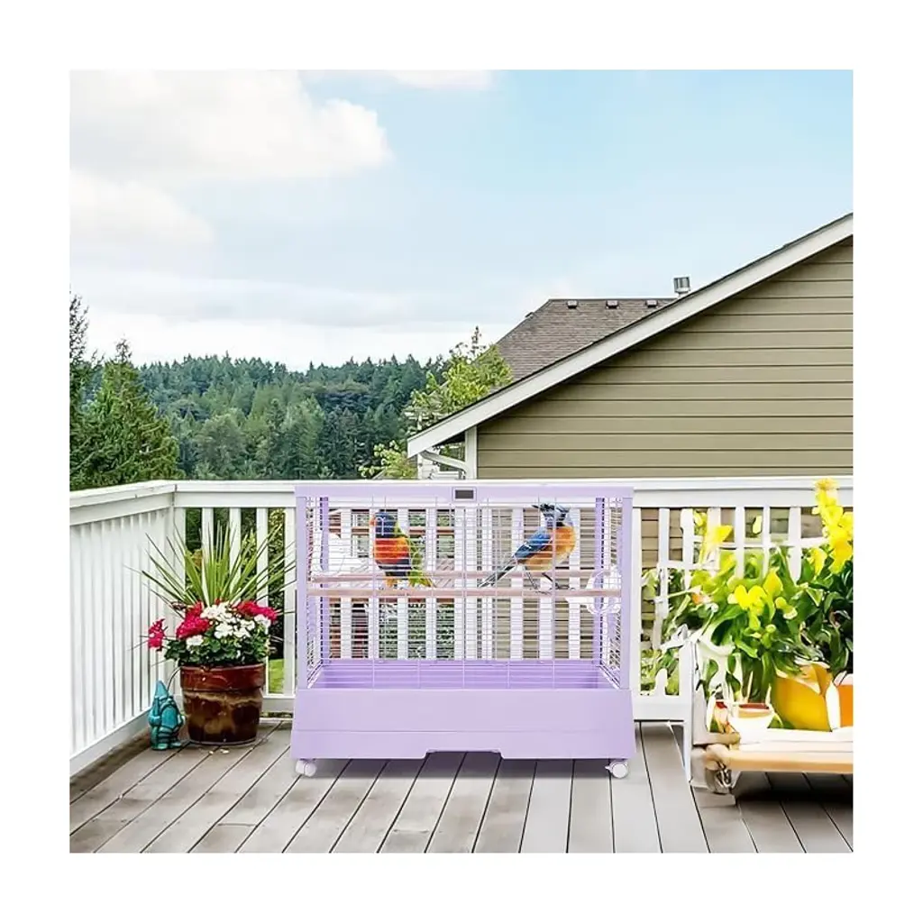 23 Inch Bird Cage, Tall Iron Bird Cage With Rolling Stand, Spacious 28 X 18 X 23 Inch, Lockable Casters, External Feeders & Removable Tray