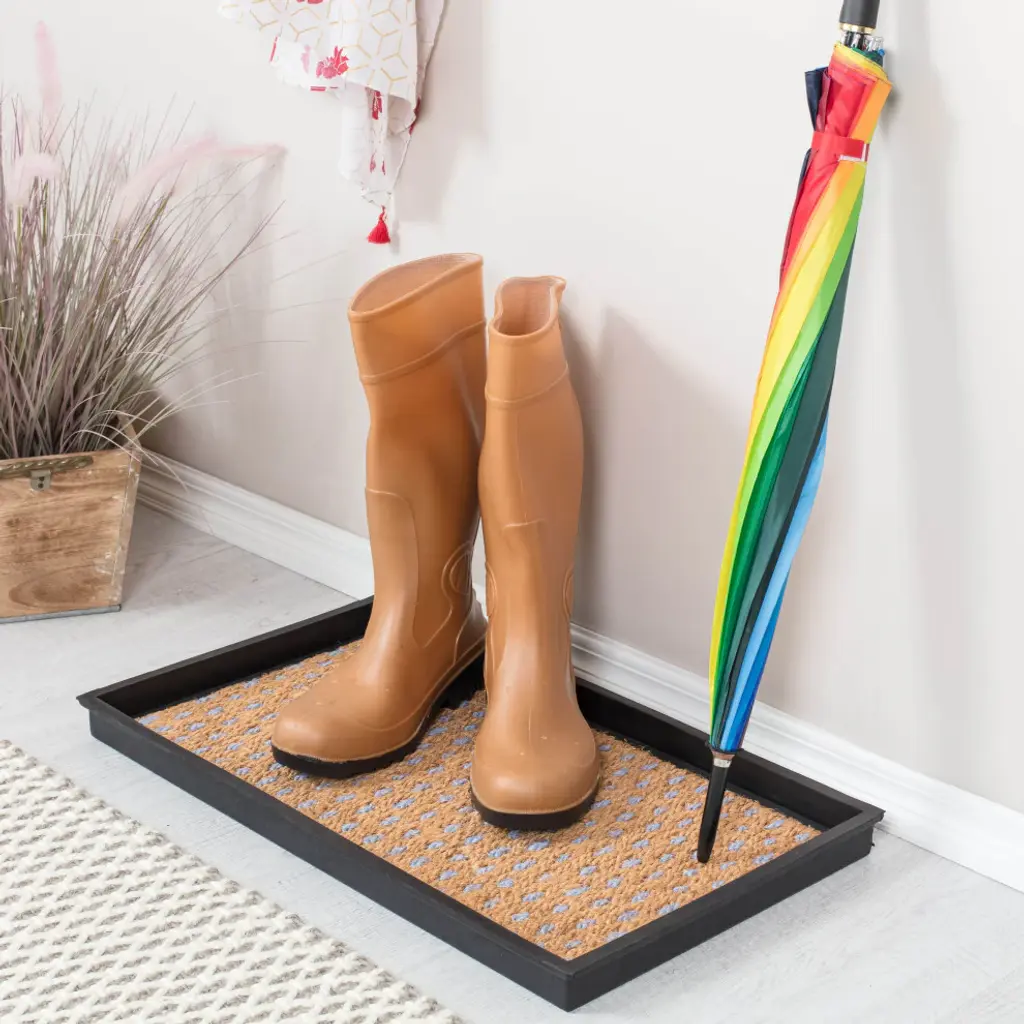 24.5"x14"x1.5" Natural/recycled Rubber Boot Tray Tan/blue Coir Insert