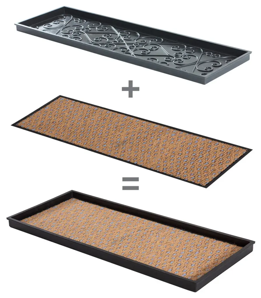 Boot trays don''t have to be boring. The foundation of this collection begins with a premium, heavy-duty, waterproof tray made of natural and recycled rubber featuring a classic scroll design. To that we have added an easily removable insert that is available in a variety of stylish patterns and woven from natural, durable coir fiber. This insert adds a pretty punch to your decor and cleans up simply just remove insert, shake out debris, hose off insert, air dry and you are back in business. Genius! Now go outside, do what you do and know that your footwear has a safe and smart place to rest when you get back home.