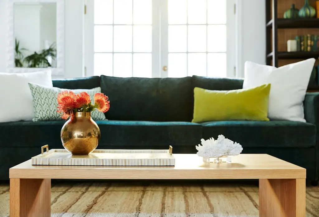 Pairing a mosaic of natural bone tiles with clean-lined brass handles, this tray is a luxe option for grounding a tabletop vignette.