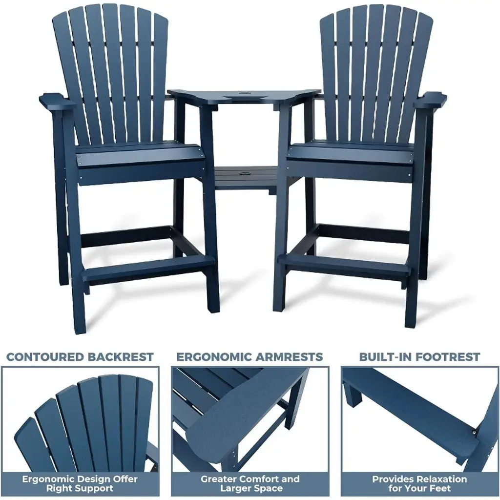 Ergonomic Comfort: Features a high backrest and contoured seat for superior support during long gatherings, ensuring comfort while dining, lounging, or entertaining outdoors. Built-In Convenience: Includes a connecting drink tray between the stools to hold beverages, snacks, or small items—ideal for BBQs, parties, or relaxing by the fire pit. All-Weather Resilience: Designed to withstand UV rays, rain, and humidity without peeling or warping, maintaining a like-new appearance season after season. Stylish 2-Pack Set: Sold as a matching pair, these modern bar stools elevate your outdoor space with a unified look—great for porches, cabins, and coastal homes.