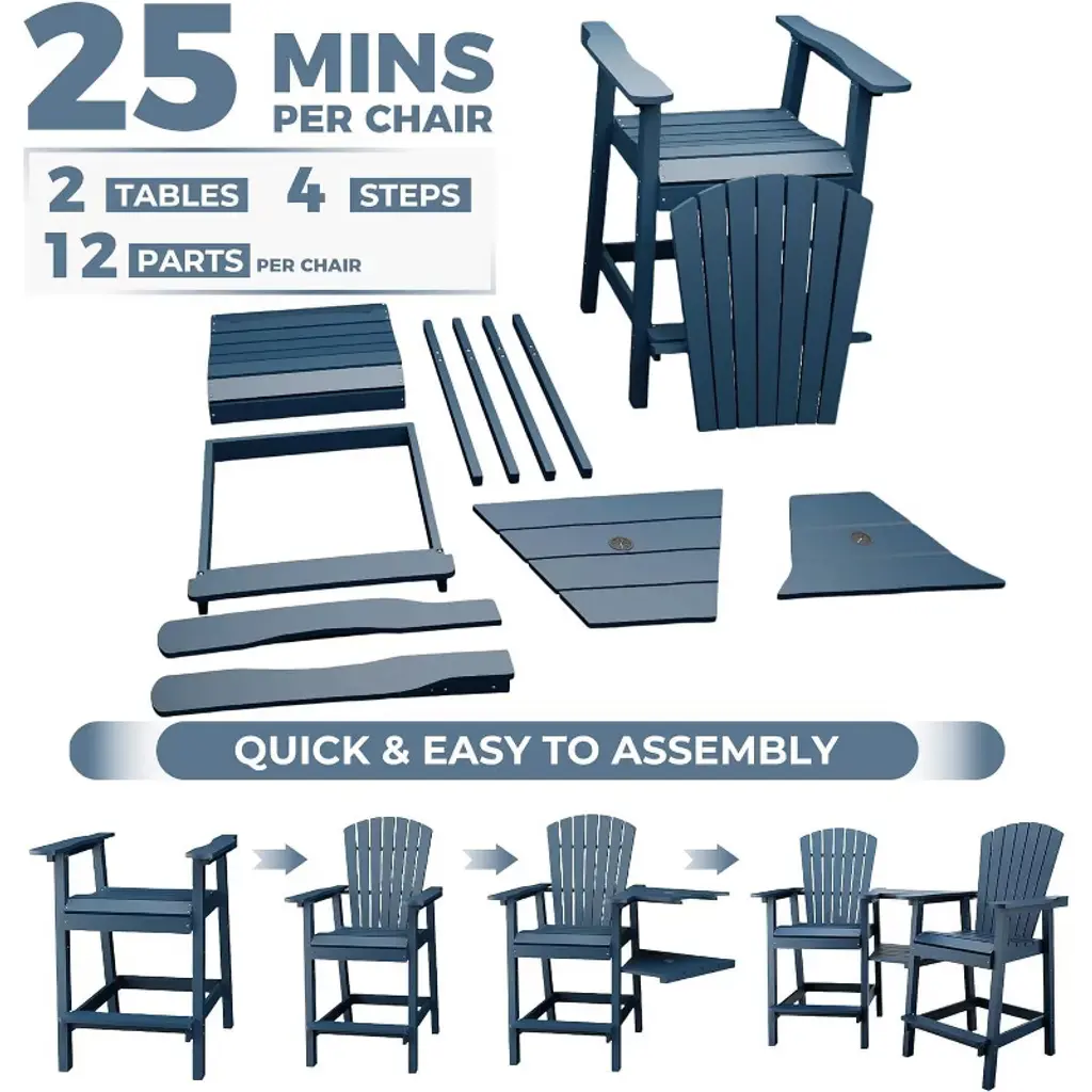 2Pcs Outdoor Barstools With Connecting Tray, Bar Chairs For Deck, Balcony, Backyard, Patio Bar Stool Chair With High Back Weather Resistant, Blue