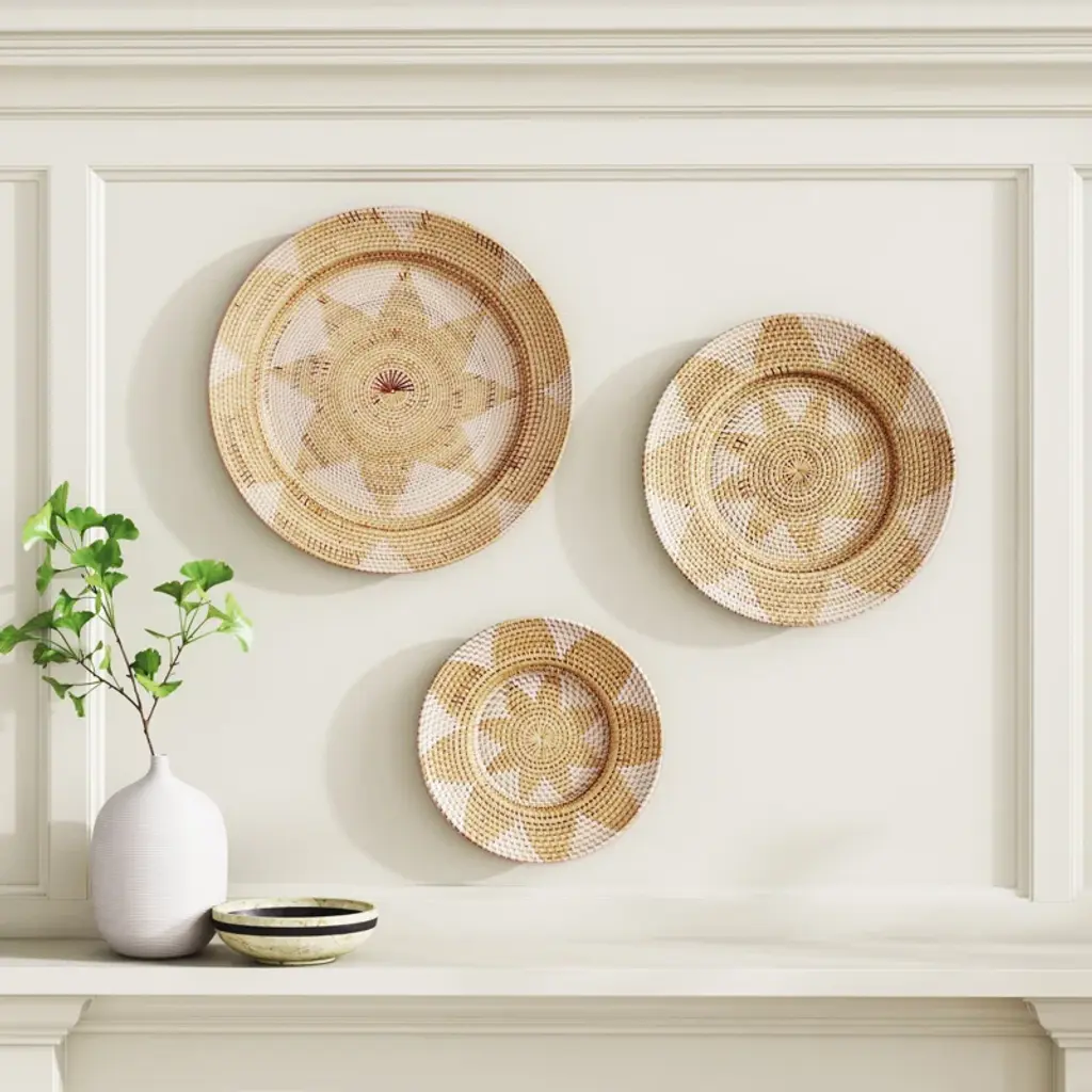 3 Piece Wicker Basket Trays Wall Décor Set