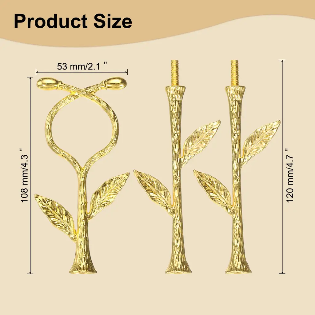Description:Zinc Alloy Material: Made of good hardness zinc alloy material, this cake plate stand handle is sturdy and durable to use, strong enough to ensure the stand's stability, and also adds a touch of sophistication to the presentation of your dessertsSophisticated Appearance: The stand's tiered design allows you to work with ceramic, glass, or various styles of plates for the display cakes, cupcakes, or fruit, and the vine pattern design adds a decorative detail that complements the elegance of the eventEasy to Use: The stand is easy to use and move, place the bottom tier of the cake or dessert on the top of the stand and secure it with the supplied fixing kit, ensuring each tier is properly balancedWide Application: The cake stand handle is suitable for various occasions, such as home baking, party decoration, banquets, wedding receptions, birthday parties, tea parties, etc., and other activities, and can also be used in bakeries or cafes for displaying pastriesNote: Please note that this product does not include the plateSpecification:Material: Zinc AlloyConnecting Rod Length: 12 cm/4.7 inchTop Rod Length: 10.8 cm/4.3 inchTotal Width: 53 mm/2.1 inchScrew Size: M6*1Package Content:1 Set x Cake Tray Stand Handle with Mounting Parts