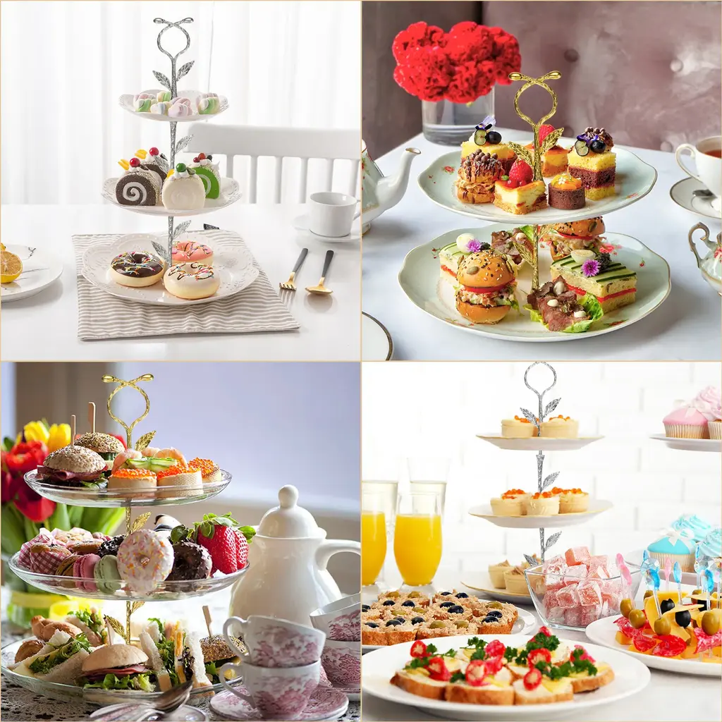 3-Tiers Cake Tray Stand Handle Metal Holder For Cake Plate - Silver - 3 Set