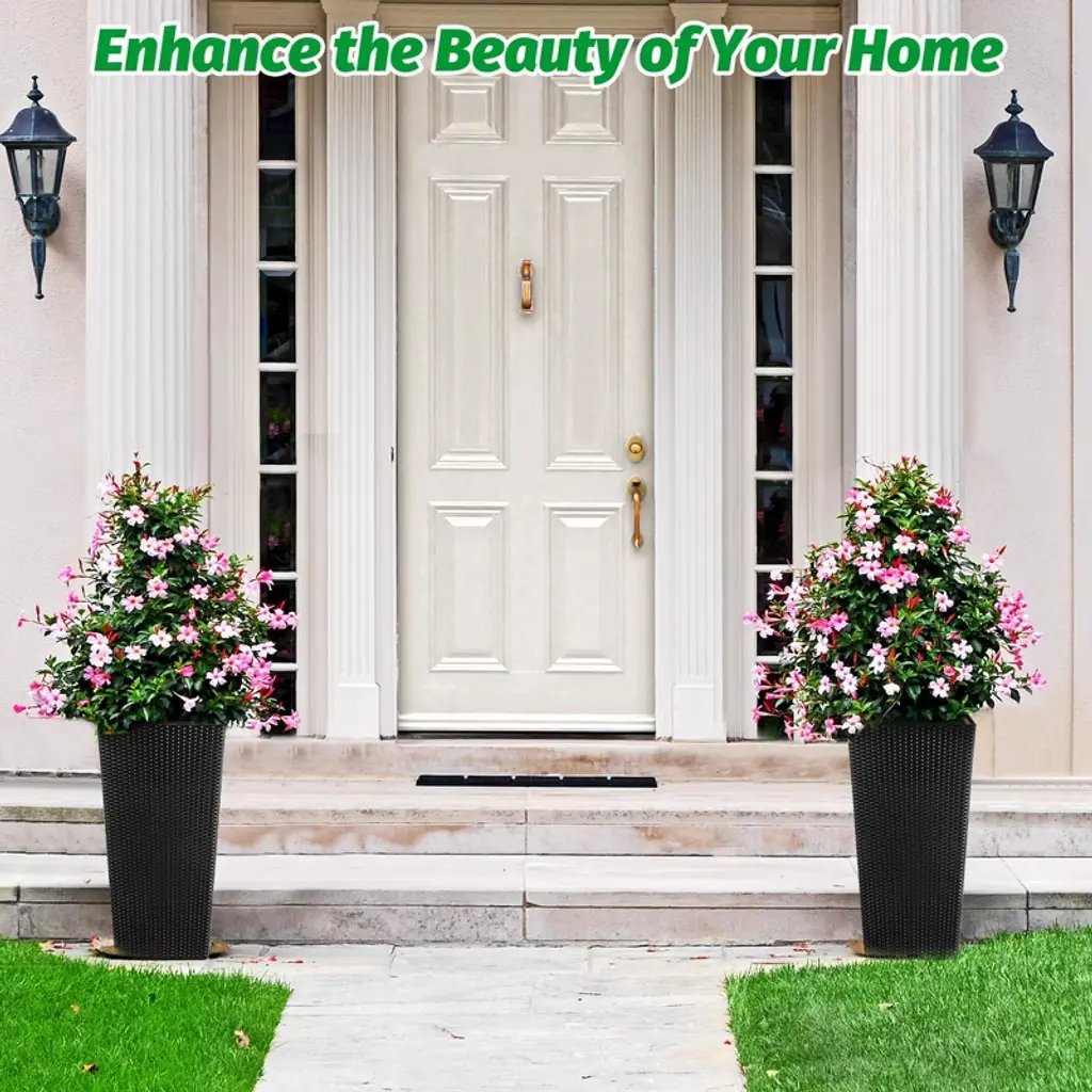 Enhance your indoor or outdoor space with this set of 2 large 30-inch tall rattan flower pots. Designed with a self-watering system, these planters feature 2 removable trays, a convenient water level monitor, and built-in wheels for easy mobility. Crafted from durable, weather-resistant materials, they are perfect for flowers, tall trees, or faux plants, maintaining their beauty in any season. The elegant rattan texture adds a stylish touch, making them ideal for gardens, patios, balconies, or living rooms.