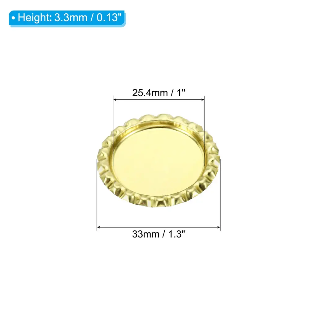 Flat bottle caps are applied to crafts, scrapbooking, hair accessories, pendants, earrings, and many other DIY projects. Great for art class projects, holiday decorations, and birthday party fun.SpecificationMaterial: MetalSurface Treatment: Baking VarnishOverall Dimensions: 33 x 3.3 mm / 0.13 x 1.3 inch (Dia*H)Bottom Inner Diameter: 25.4 mm / 1 inchPacking List: 30pcs x Double-Sided Colorful Craft Bottle CapsAdvantages1. Bottle caps are made of metal material, the bottle caps are pressed flat, painted on both sides, and have smooth edges, perfect for DIY projects.2. Concave and convex round Flat Bottle Caps, positioning the image on the bottle cap can create a 3D look.InstructionFlattened bottle caps can be used with clear resin stickers to embed photos or other small objects as decorations such as pendants.NOTE: These bottle crown caps are for craft use only, have no rubber lining inside, and are not intended to be used as bottle sealing caps.